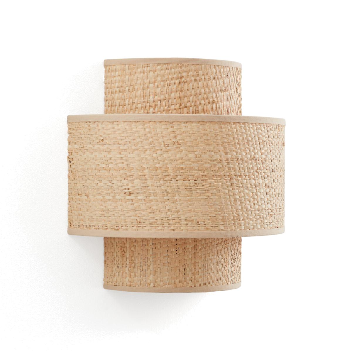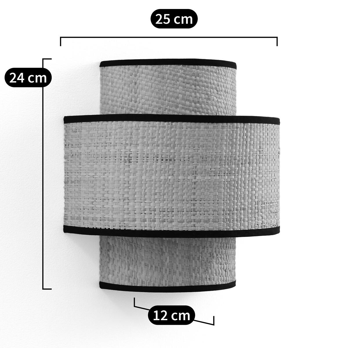 Bring in the light. The Dolkie raffia wall lamp is ideal for bringing a natural note to a contemporary interior. It helps to create a soft and warm atmosphere. Made in France. Product Details • Double raffia lampshade, with cotton braid • Galvanised steel structure covered with epoxy paint • White epoxy metal E14 lamp holder support • This product is non-electrified, the Baulind electric cable is sold on the site. Dimensions • Width: 25cm • Height: 24cm • Depth: 12cm • Made in France. Dimensions and weight of parcel • L26 x H26 x D26cm. 0.3kg