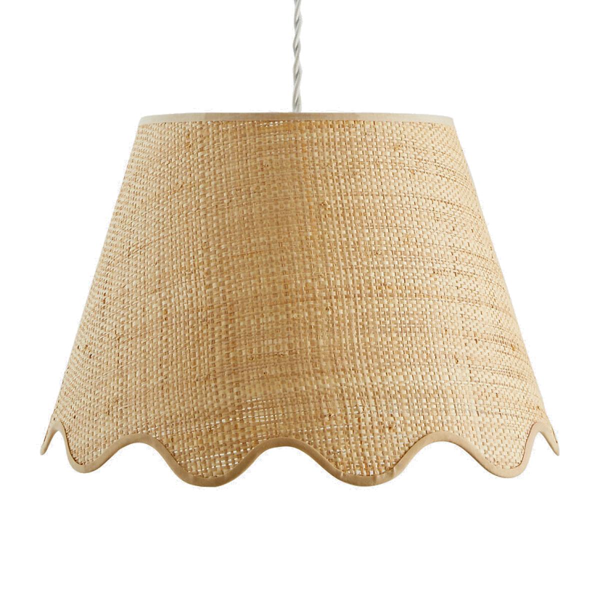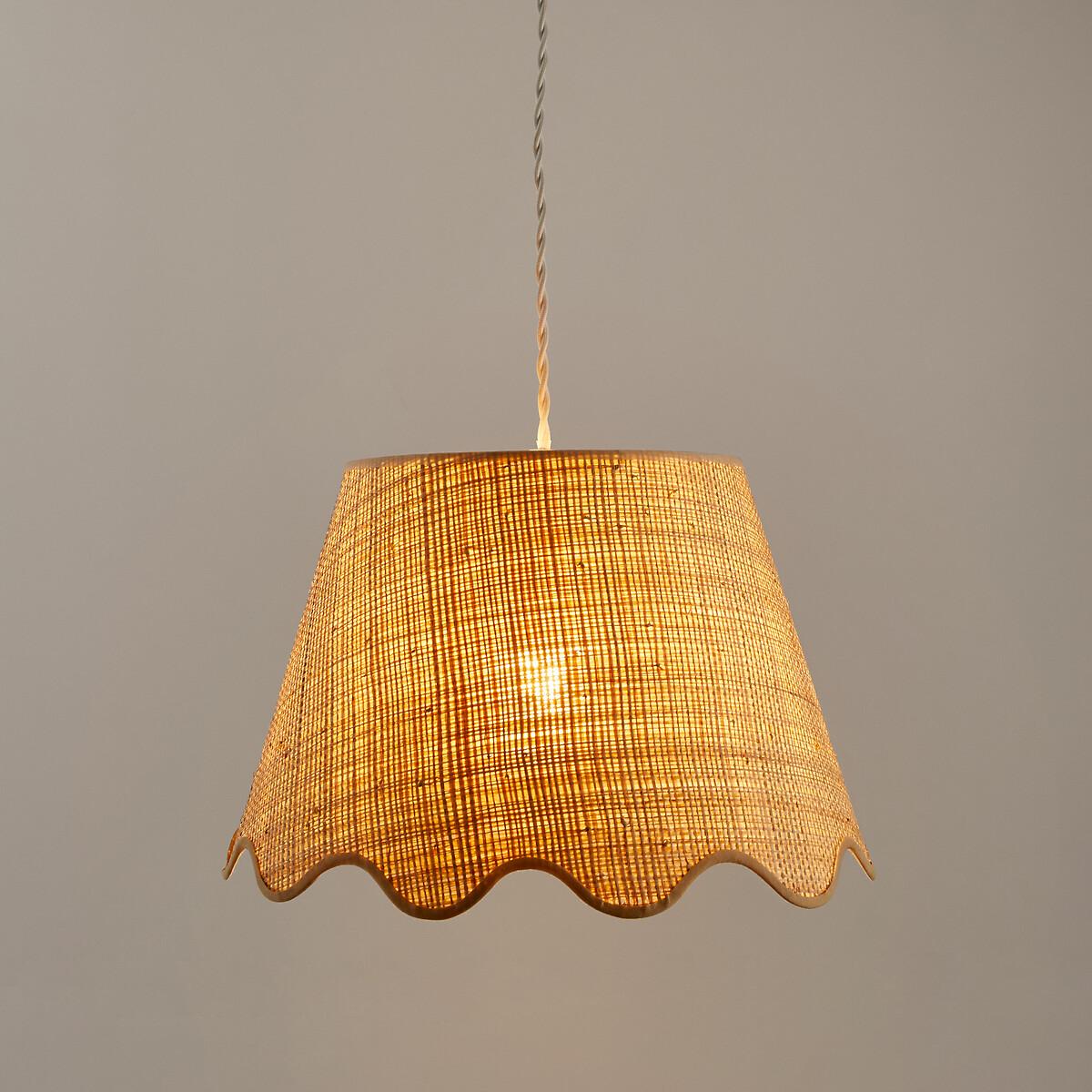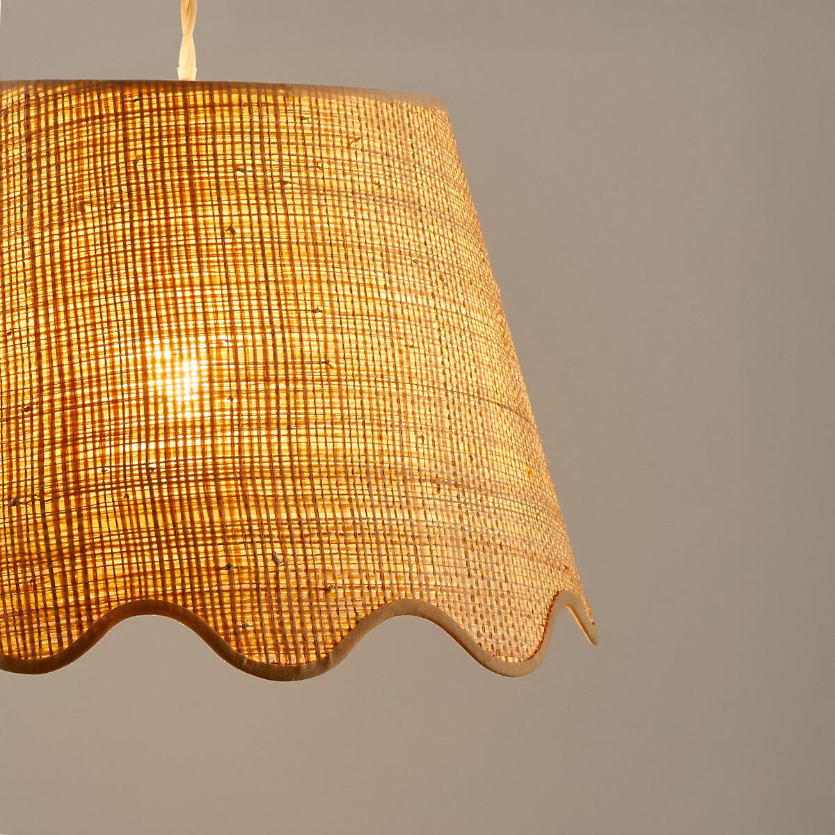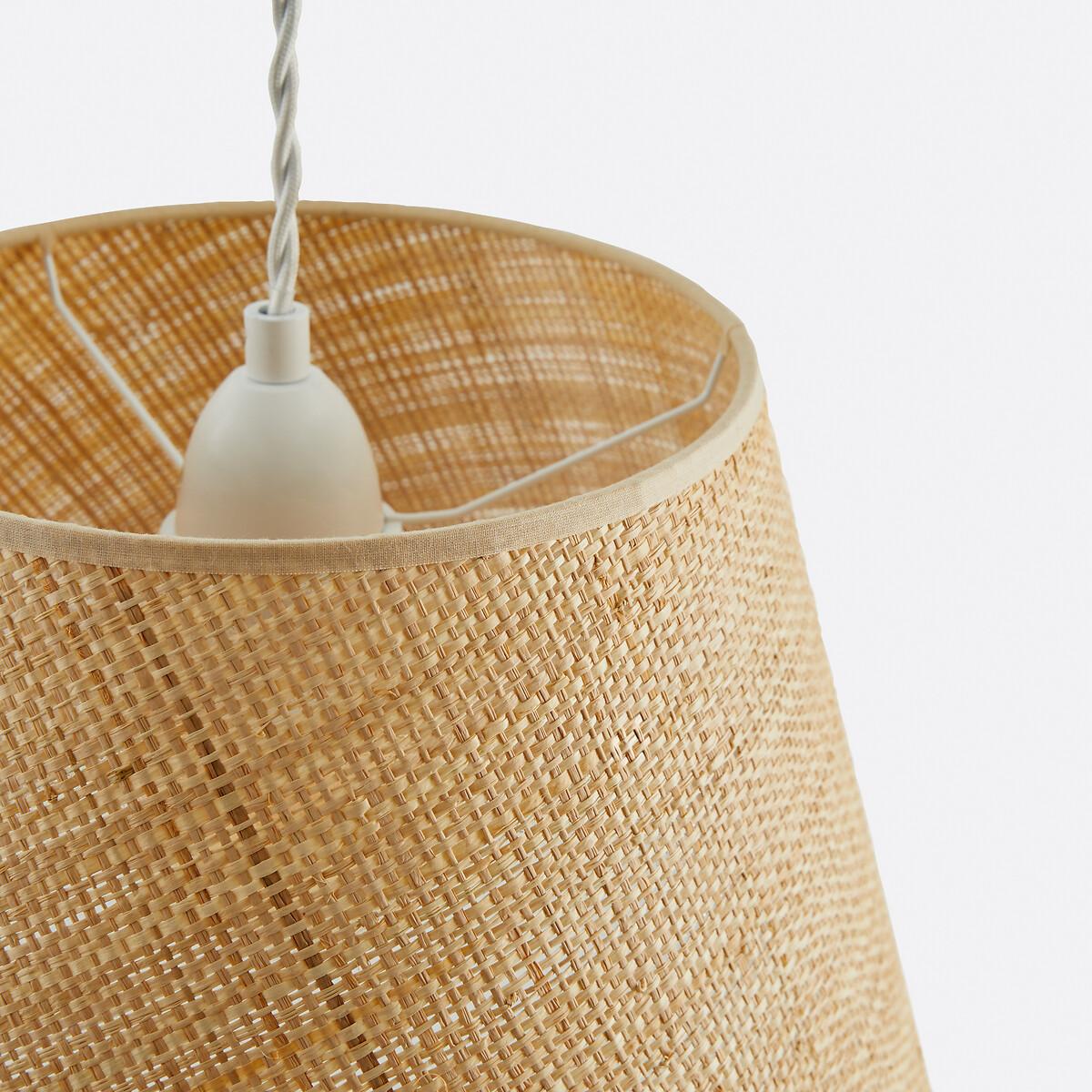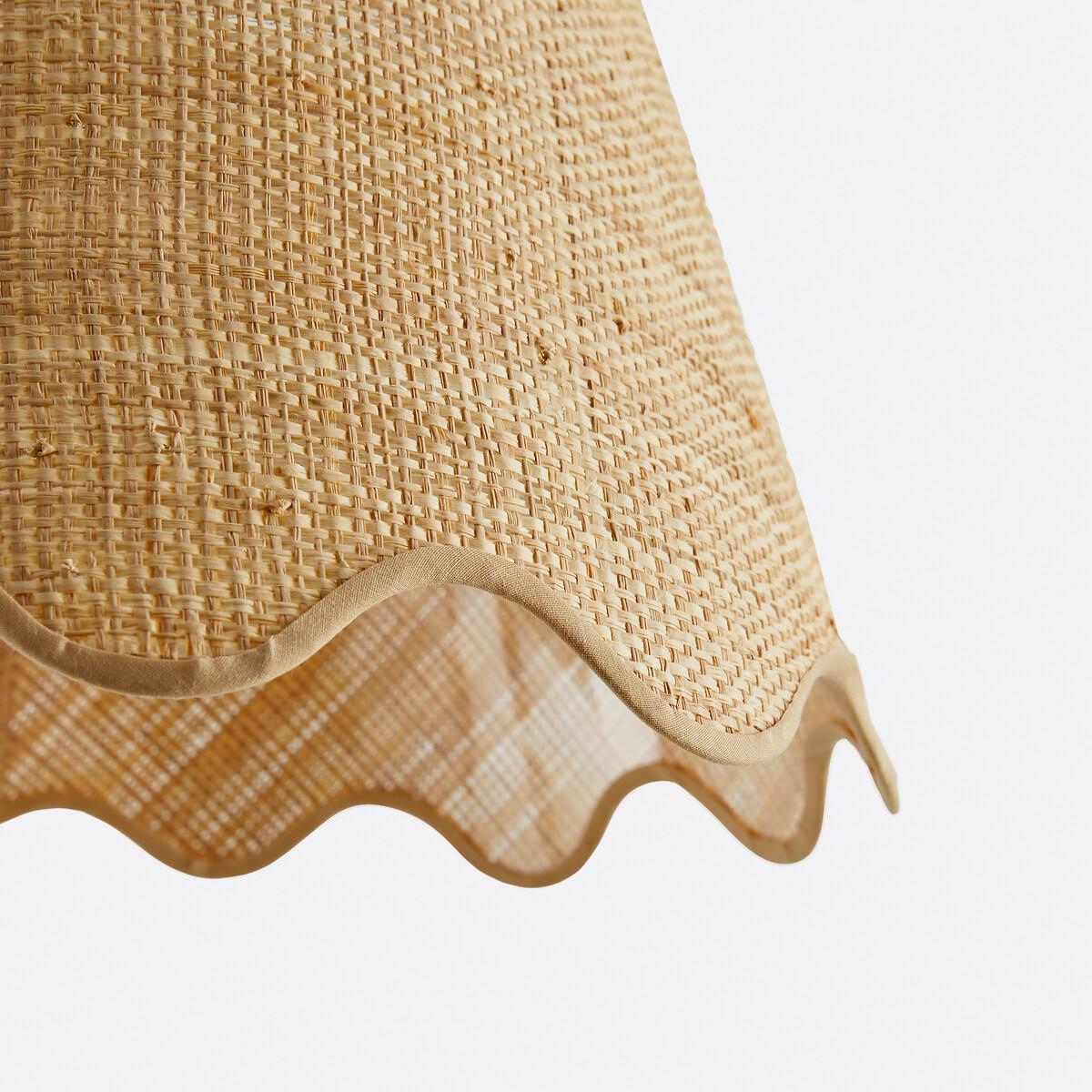 Bring in the light. The Dolkie raffia pendant light is ideal for bringing a natural note to a contemporary interior. It helps to create a soft and warm atmosphere. Made in France. Product Details • In wave-effect raffia with cotton braid • White epoxy steel structure • Supports E27 bulb (not supplied) • This product is sold non-electrified. Find the Baulind electric cable sold on our site. Dimensions • Diameter at the top : 22cm • Diameter at the bottom: 35cm • Height: 24cm • Made in France. Dimensions and weight of parcel1 parcel • L36 x H28 x D36cm. 0.93kg.