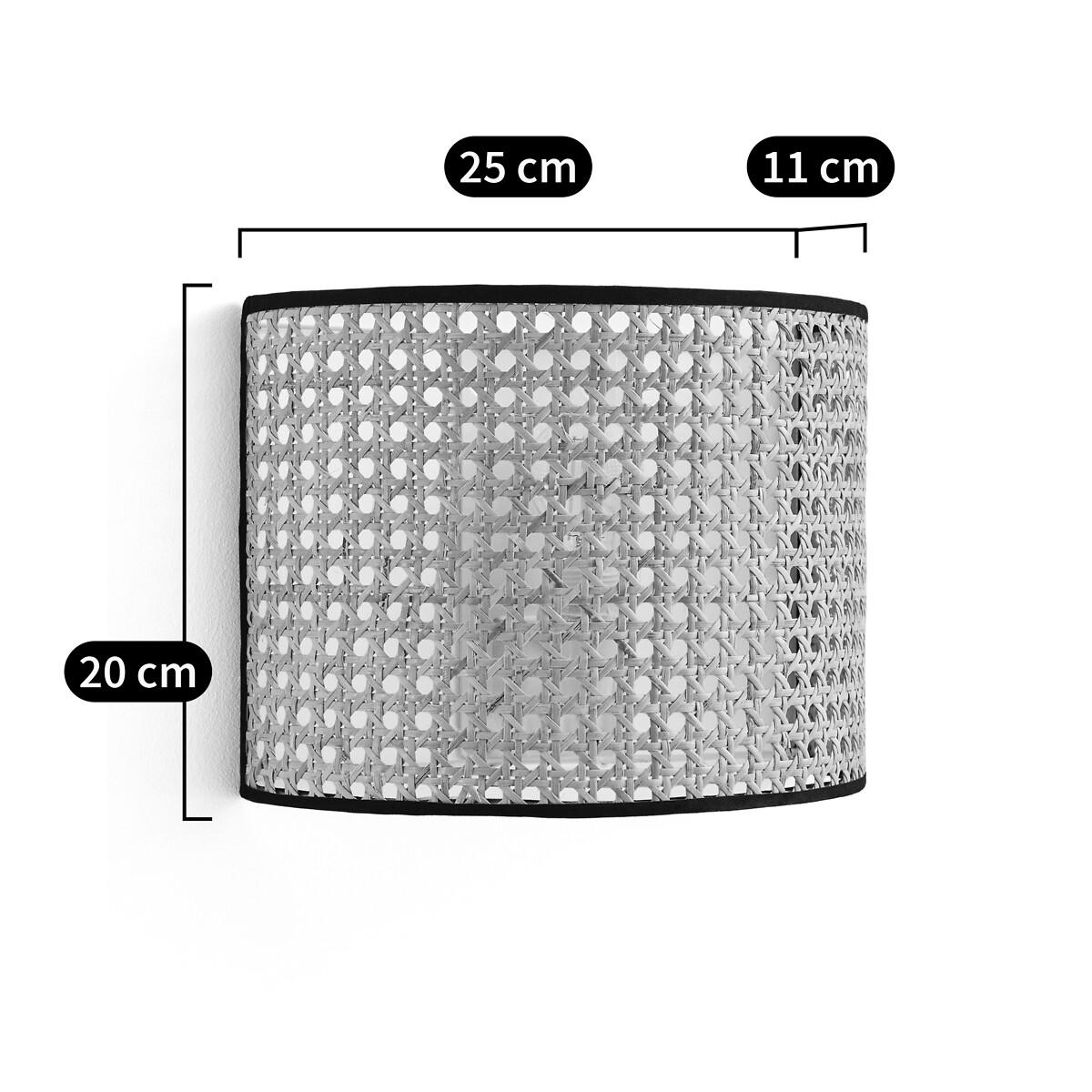 Bring in the light. The rattan cane wall light is ideal for bringing a natural note to a contemporary interior. It helps to create a soft and warm atmosphere. Product Details • Rattan cane wall lamp, with cotton braid • Galvanised steel structure covered with epoxy paint • Support for E14 socket (bulb not included) • This product is non-electrified, the Baulind electric cable is sold on the site. Dimensions • Length: 25cm • Height: 20cm • Depth: 11cm • Made in France. Dimensions and weight of parcel1 parcel • L26 x H26 x D26cm. 0.7kg