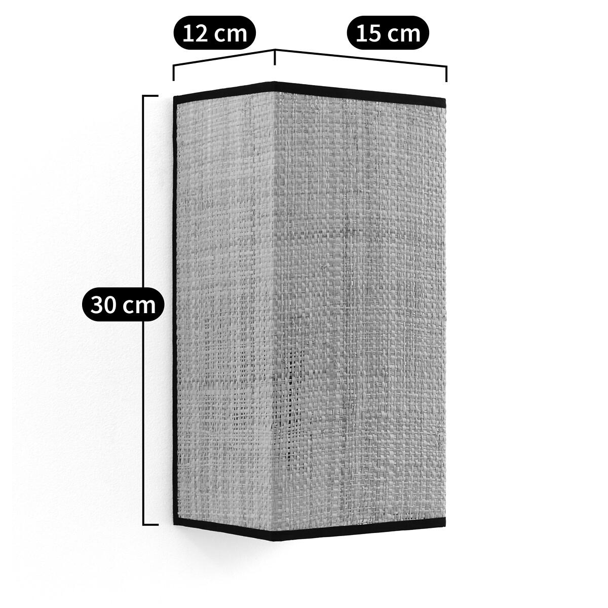 Bring in the light. The Dolkie rectangular raffia wall light is ideal for bringing a natural note to a contemporary interior. It helps to create a soft and warm atmosphere. Made in France. Product Details • Raffia wall lamp, with cotton braid • Galvanised steel structure covered with epoxy paint • Support for E14 socket (bulb not included) • This product is sold non-electrified. Find the Baulind electric cable sold on the site. Dimensions • Length: 15cm • Height: 30cm • Depth: 12cm • Made in France. Dimensions and weight of parcel1 parcel • L31 x H18 x D15cm. 0.3kg
