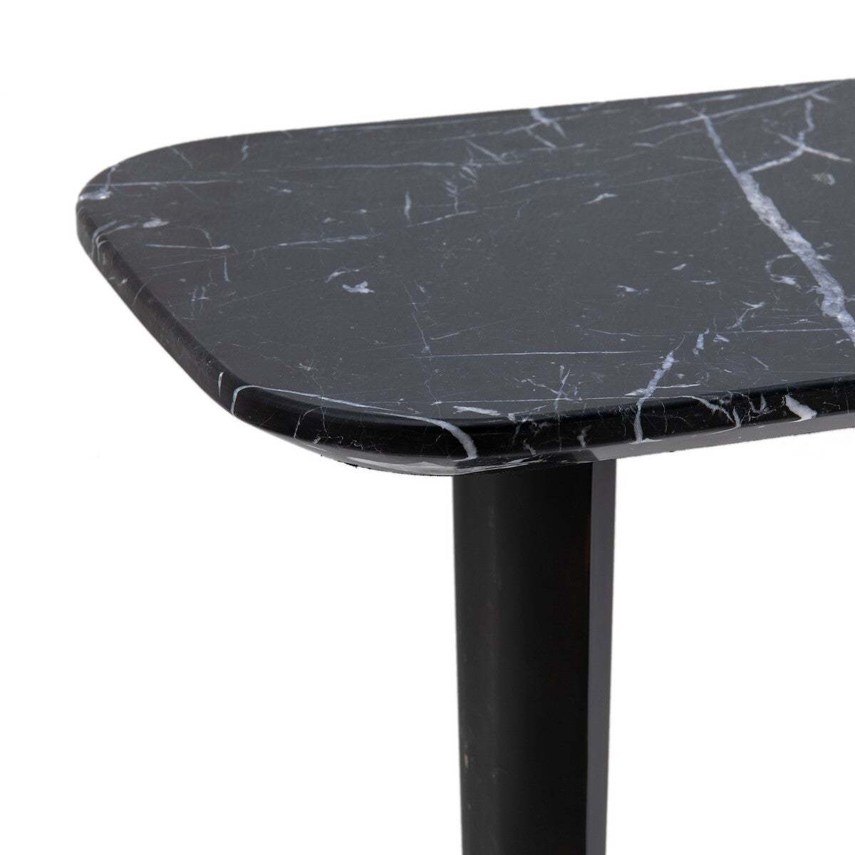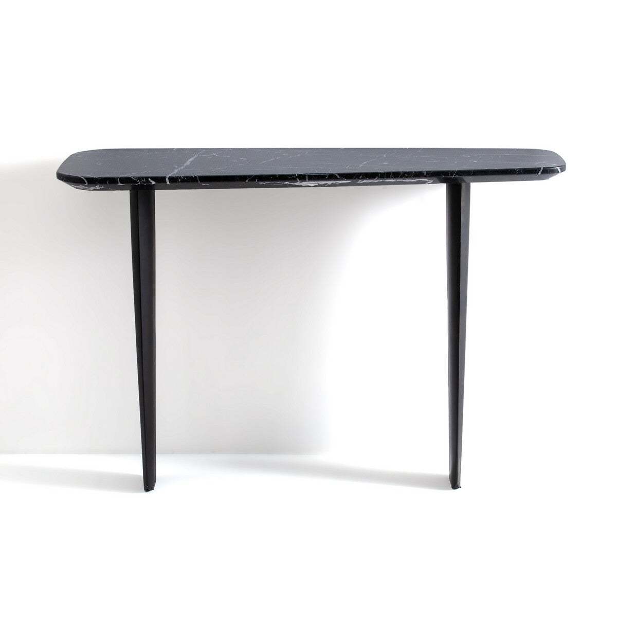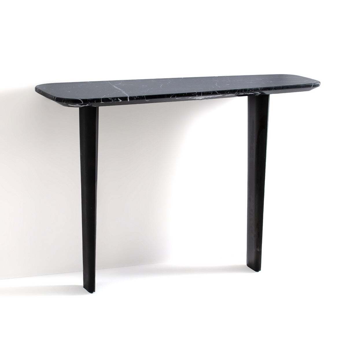 The Dolmena marble console table. The Dolmena console table offers an organic, curved shape with a chamfered edge. Its original base consists of 2 feet in the shape of a metal airplane wing, epoxy finish, used effect. Product Details. Chamfered top in thick marble. 1.5cm: Each piece is unique. so the marbled effect may vary. Metal base epoxy finish, aged effect. Must be fixed to wall. Dimensions. Width: 111cm. Height: 75cm. Depth: 40cmDelivery:. The Dolmena console table requires base fixing to top (instructions included). It will be delivered to your home!Note! Please check that access points (doorways, stairways, lifts) are wide enough to accommodate your delivery. Dimensions and weight of parcel2 parcels. 83 x 27 x 22 cm - 10 kg. 123.5 x 51.5 x 15 cm - 30 kg.