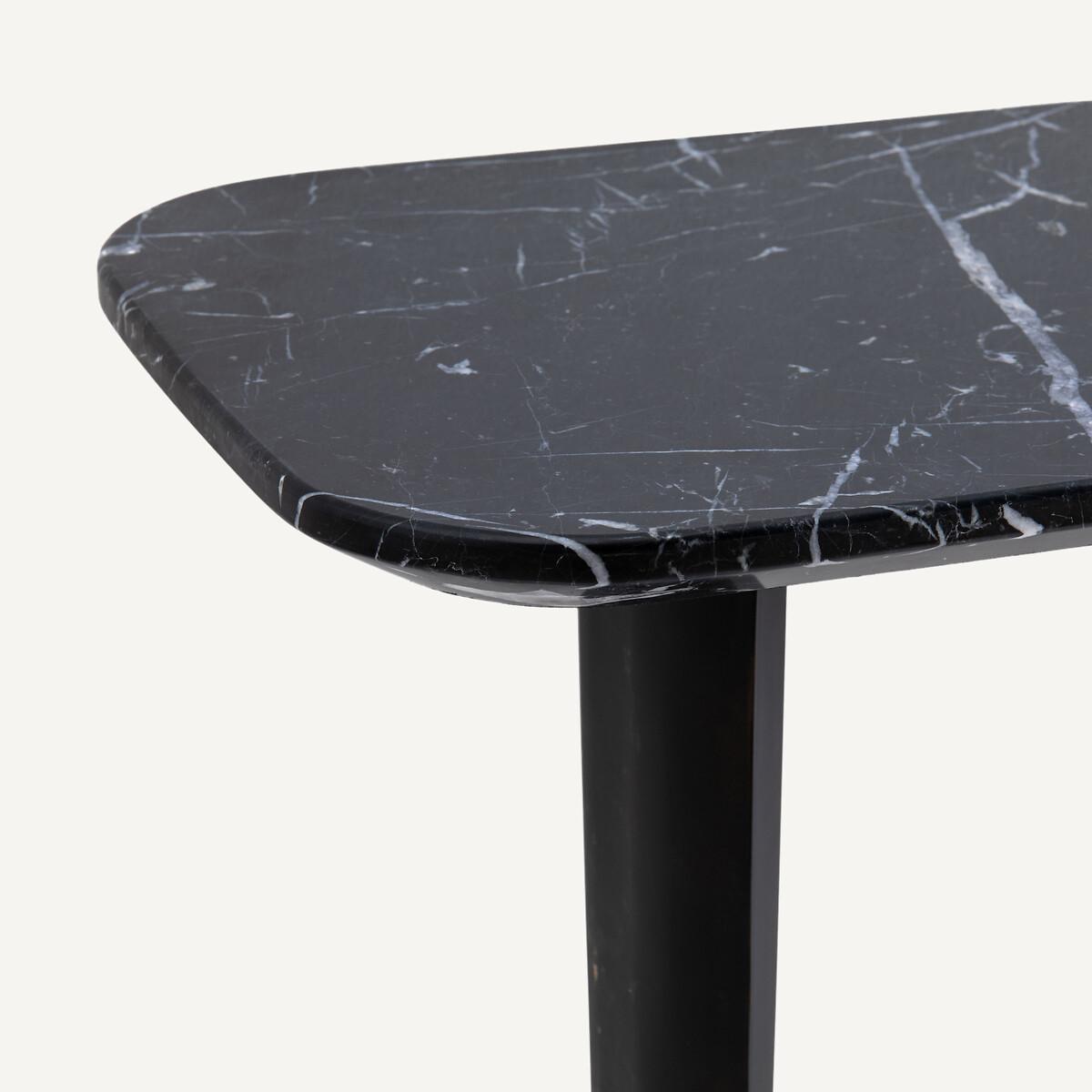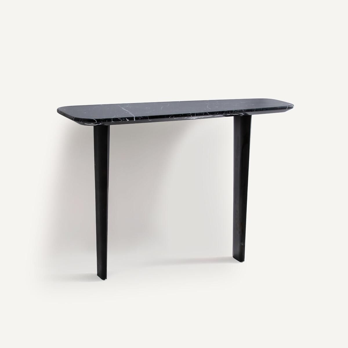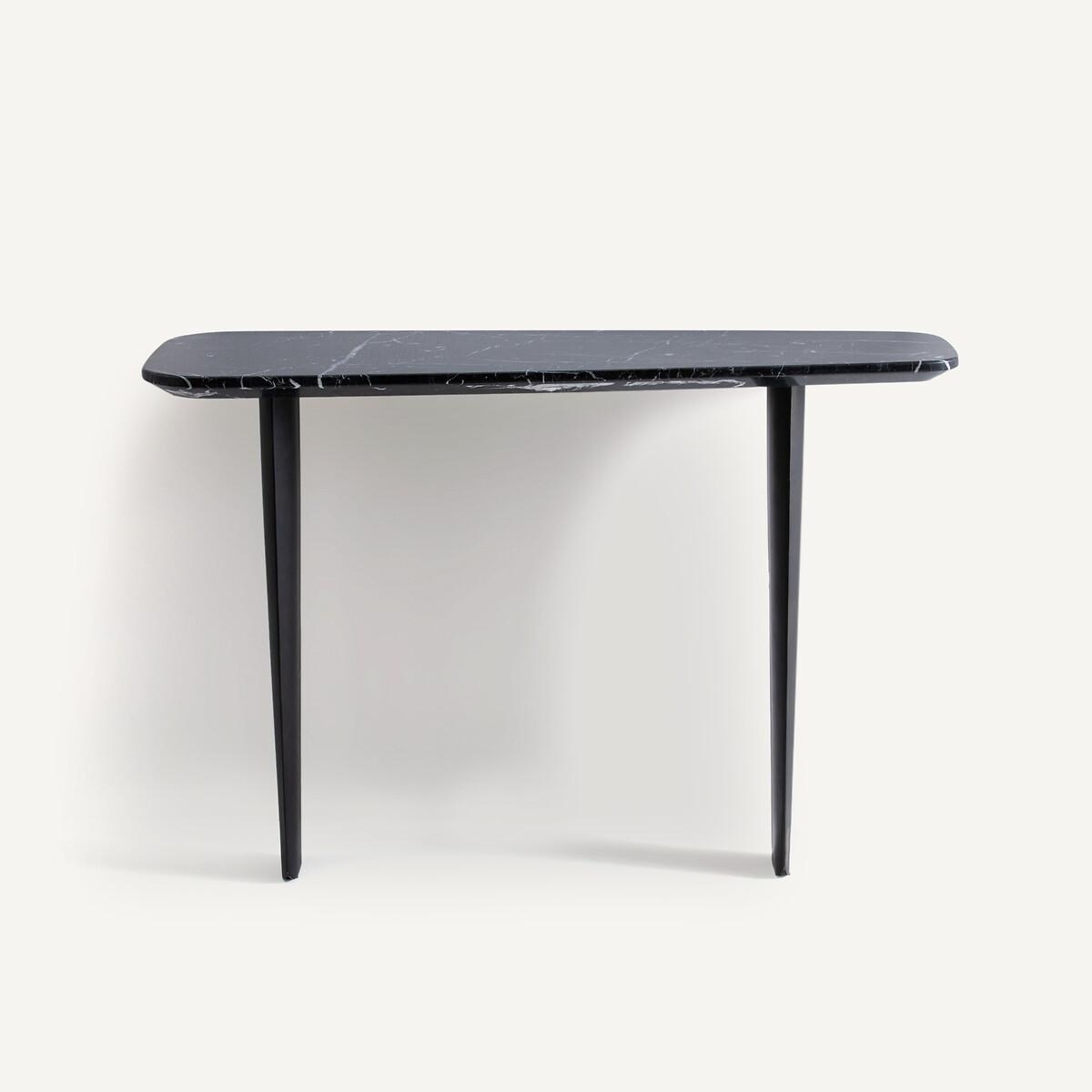 The Dolmena marble console table. The Dolmena console table offers an organic, curved shape with a chamfered edge. Its original base consists of 2 feet in the shape of a metal airplane wing, epoxy finish, used effect. Product Details • Chamfered top in thick marble. 1.5cm: Each piece is unique. so the marbled effect may vary • Metal base epoxy finish, aged effect • Must be fixed to wall Care Advice. Marble is a naturally porous material that is sensitive to stains. To preserve all its qualities, follow the advice below. :• Avoid placing hot objects on the surface, use coasters and trivets. • Immediately wipe up any spilled liquid with a white cloth dipped in lukewarm water and wrung out. • Maintain your marble regularly with products from our partner Akemi® • We advise you to use Akemi® Crystal Clean Spray for your daily maintenance and, at least once a month, Akemi® Triple Effect Spray to clean and protect your marble surface.. This will reinforce the initial treatment and its water-repellent effect will prevent dirt from easily penetrating the stone. • If you want to use products other than those of our partner Akemi®, choose only p. H-neutral cleaners. • Acid, anti-limescale or bleach-based products are not recommended. Dimensions • Width: 111cm • Height: 75cm • Depth: 27/40cmDelivery:. Requires some assembly - feet to be attached. Available for home delivery. Dimensions and weight of parcel2 parcels • 83 x 27 x 22cm - 10kg • 123.5 x 51.5 x 15cm - 30kg
