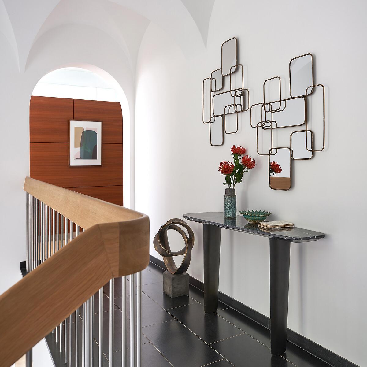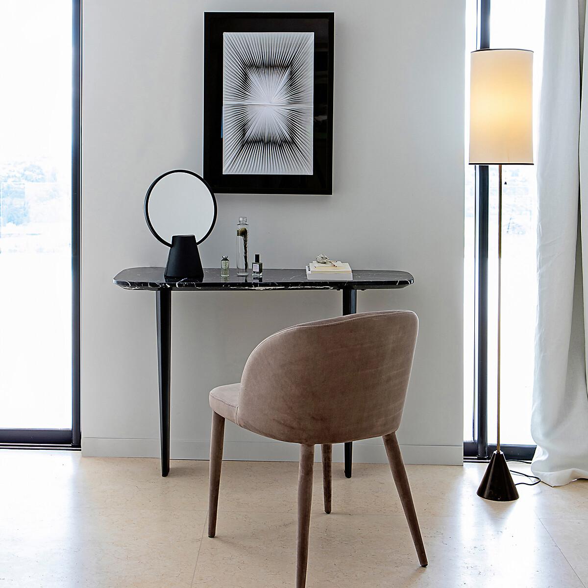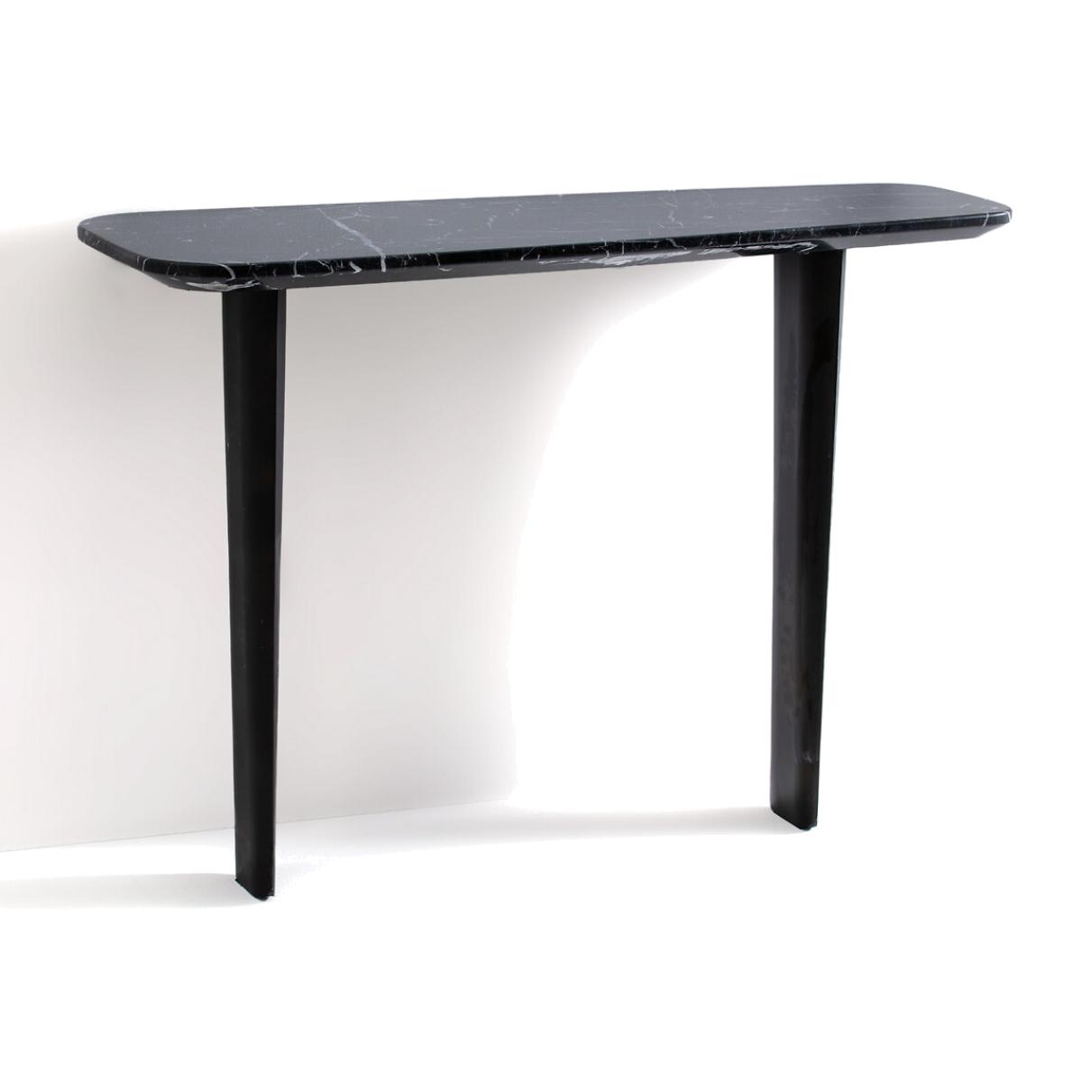 The Dolmena marble console table. The Dolmena console table offers an organic, curved shape with a chamfered edge. Its original base consists of 2 feet in the shape of a metal airplane wing, epoxy finish, used effect. Product Details • Chamfered top in thick marble. 1.5cm: Each piece is unique. so the marbled effect may vary • Metal base epoxy finish, aged effect • Must be fixed to wall Care Advice. Marble is a naturally porous material that is sensitive to stains. To preserve all its qualities, follow the advice below. :• Avoid placing hot objects on the surface, use coasters and trivets. • Immediately wipe up any spilled liquid with a white cloth dipped in lukewarm water and wrung out. • Maintain your marble regularly with products from our partner Akemi® • We advise you to use Akemi® Crystal Clean Spray for your daily maintenance and, at least once a month, Akemi® Triple Effect Spray to clean and protect your marble surface.. This will reinforce the initial treatment and its water-repellent effect will prevent dirt from easily penetrating the stone. • If you want to use products other than those of our partner Akemi®, choose only p. H-neutral cleaners. • Acid, anti-limescale or bleach-based products are not recommended. Dimensions • Width: 111cm • Height: 75cm • Depth: 27/40cmDelivery:. Requires some assembly - feet to be attached. Available for home delivery. Dimensions and weight of parcel2 parcels • 83 x 27 x 22cm - 10kg • 123.5 x 51.5 x 15cm - 30kg