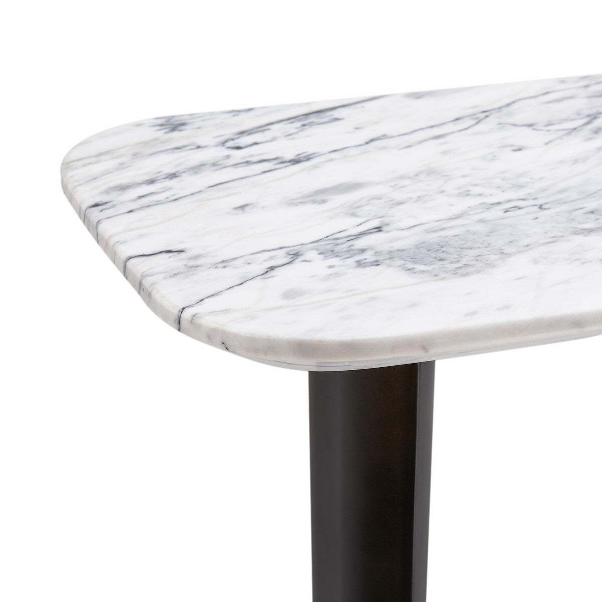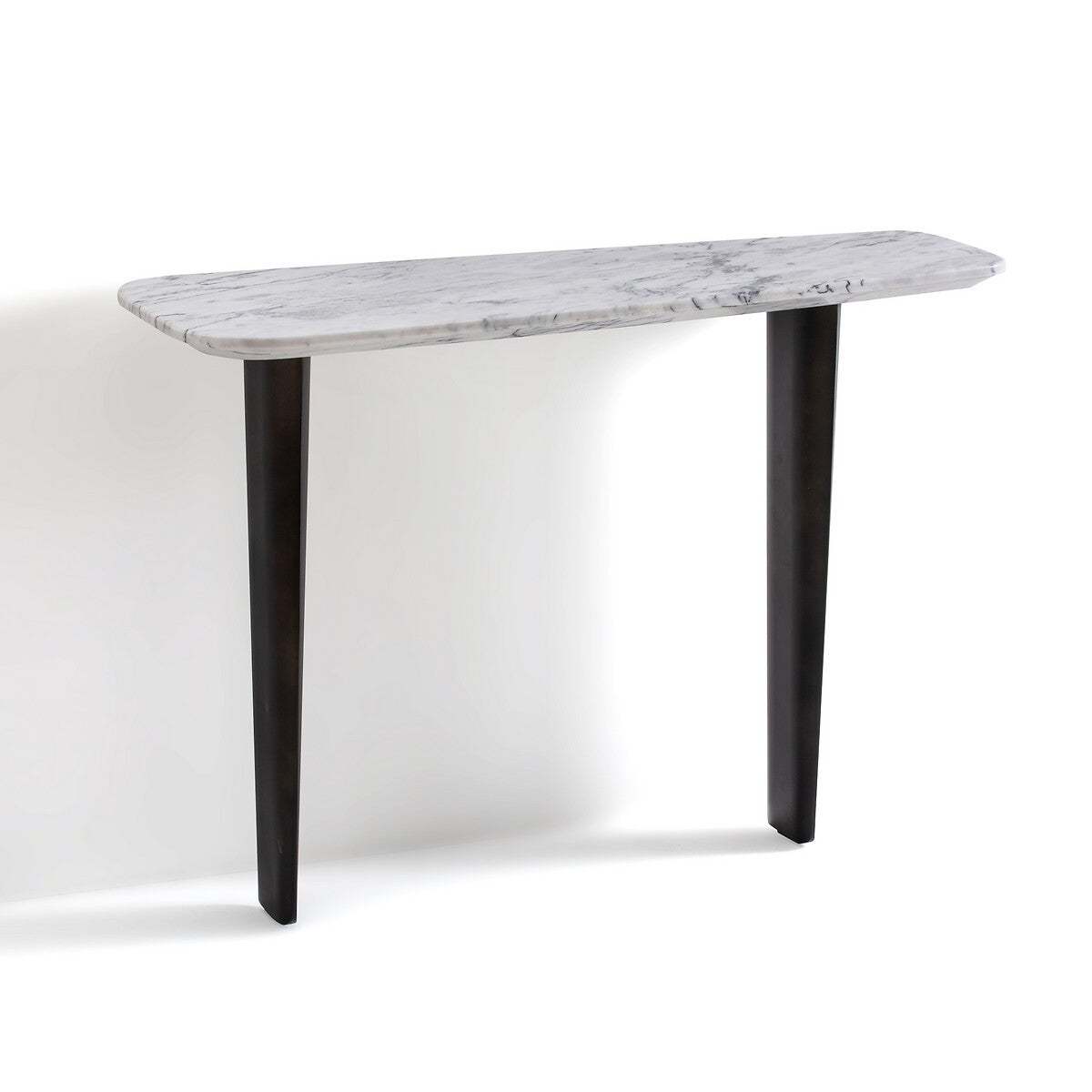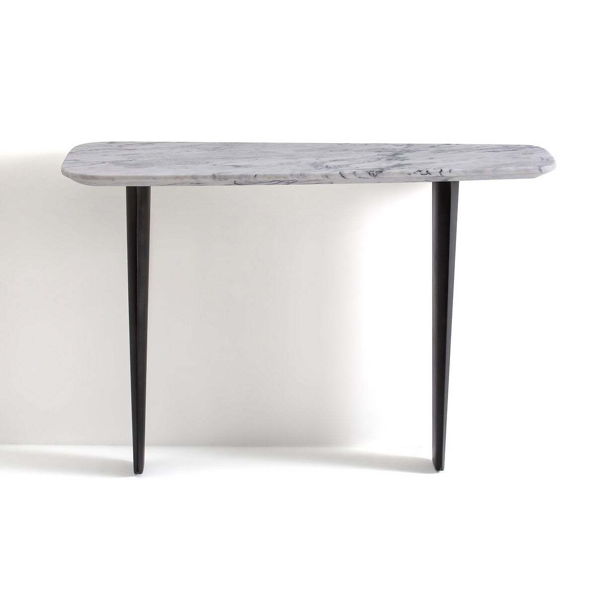 The Dolmena marble console table. The Dolmena console table offers an organic, curved shape with a chamfered edge. Its original base consists of 2 feet in the shape of a metal airplane wing, epoxy finish with aged effect. Product Details. Chamfered top in thick marble. 1.5cm. Each piece is unique so the marbled effect may vary. Metal base epoxy finish, aged effect. Must be fixed to wall. Dimensions. Width: 111cm. Height: 75cm. Depth: 40cmDelivery:. The Dolmena console table requires base fixing to top (instructions included). It will be delivered to your home!Note! Please check that access points (doorways, stairways, lifts) are wide enough to accommodate your delivery. Dimensions and weight of parcel2 parcels. 83 x 27 x 22 cm - 10 kg. 123.5 x 51.5 x 15 cm - 30 kg.