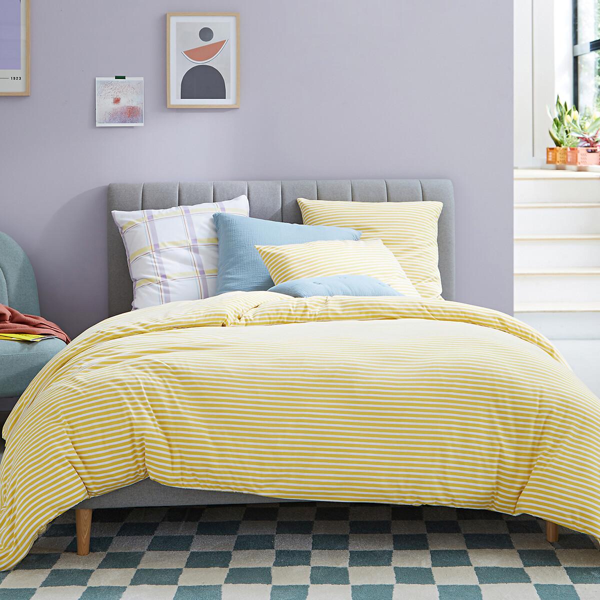 A breath of fresh air in stripes, for a contemporary design. Dolsi, cotton & modal jersey bed linen, soft, comfortable and easy to live with. A signature design by La Redoute Interiors. Cotton/modal fabric combines modal (a fibre produced from wood cellulose and solvents, which are then recovered and reused in other industries) with cotton for extremely soft bed linen. A flexible and light material. Product Details • 50% cotton, 50% modal, 150g/m2 • Striped patterns on both sides • Straight buttoned hem Match this item with the rest of the bedding in the range for a stylish bedroom. And you can mix and match it with different colours and styles from our other bedding ranges when you want to change things up and create your own unique look. Care Advice • Machine washable at 40°CSizes • 140 x 200cm: Single • 200 x 200cm: Double • 240 x 220cm: King • 260 x 240cm: Super King • OEKO-TEX® Standard 100. Standard 100 certification by OEKO-TEX® tests textile products for harmful substances via an independent, international label.