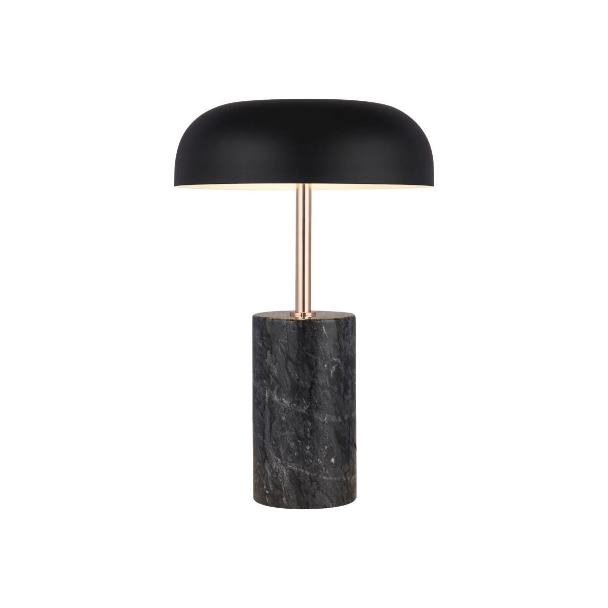 Sleek and stylish, this table lamp with a black marble base and black metal shade will add a modern feel to any room.