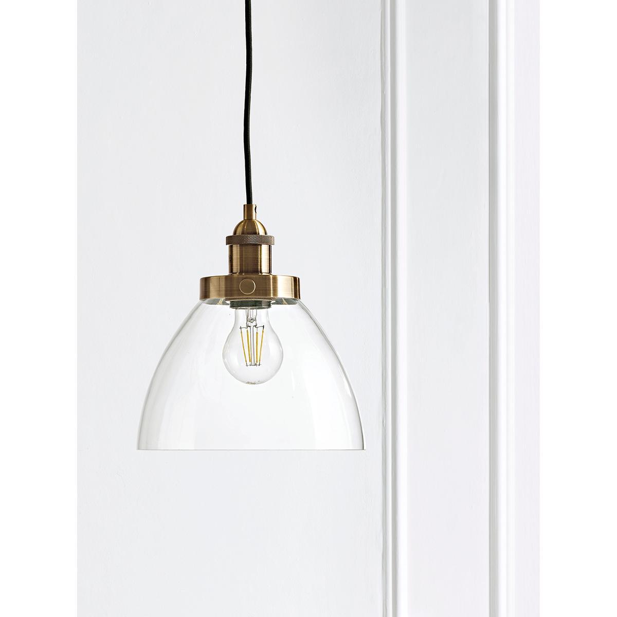 Our elegant pendant light with a classic glass shade has a slight industrial edge, with a stylish brass fitting. Functional design features use textured metal details, working as a wonderful contrast to the natural beauty of the glass.
