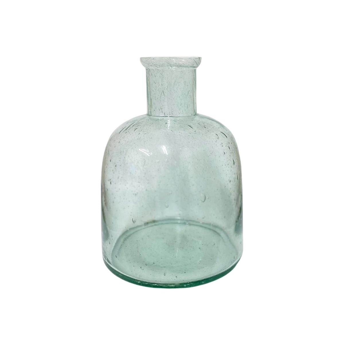 This elegant vase is blown in a domed form with a soft narrowing for the neck. The glass has a subtle hint of green and is of a bubble finish.