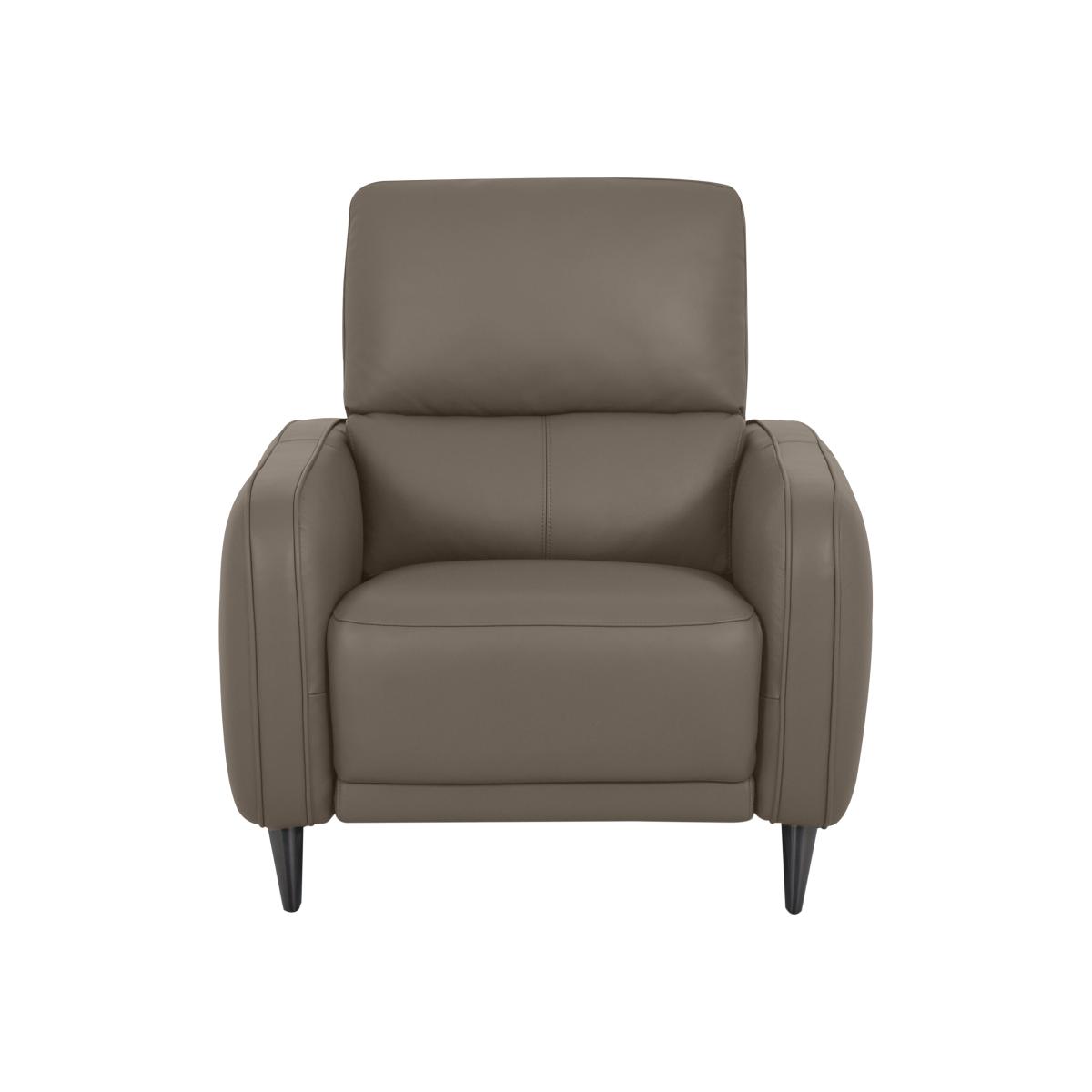 Clean modern style is always in fashion, which is why you’ll love coming home to the sofas, armchairs and footstools in the Domicil Logan collection. Offered in both exceptionally soft 100% leather and top-quality fabric, Logan is defined by its understated contemporary style as well as its range of fabulous comfort features that include power recliners, sprung seats, luxurious cushioning and built-in USB ports. The collection is also a great choice for smaller rooms thanks to space maximising wall-away recliners, slender arms and storage footstools. Handcrafted exclusively for Furniture Village by Domicil using environmentally-friendly materials and processes. Now this is how you put your feet up. This 100% leather power recliner armchair by Domicil for Furniture Village has a fabulous sprung seat, great lumbar support and even a USB port. Why you'll love it Leather power recliner chair makes relaxing so much easier. Understated modern style with slender arms and tapered legs. Relaxation-ready with a wall-away power recliner, sprung seat and USB port. In 100% premium leather upholstery that’s exceptionally soft and supple. Choice of two leather grades and a huge range of fashionable colours. Also available with a battery-powered recliner and without a recliner. Handcrafted for Furniture Village. This leather power recliner chair is part of the Domicil Logan collection. What you need to know Medium comfort level. Seat suspension: no-sag spring. Seat cushioning: foam, inner coil. Back support: rubber webbing. Back cushioning: fibre. Feet are removable. Please allow time for new recliners to ease. Minor gaps are necessary to ensure ease of recliner motion and may be exaggerated depending on floor type. Leather has unique marks and characteristics with variation in colour and texture. Leather softens with use. Smoothing the tops of leather cushions prevents signs of visual comfort. Please read our upholstery care guide for more advice.