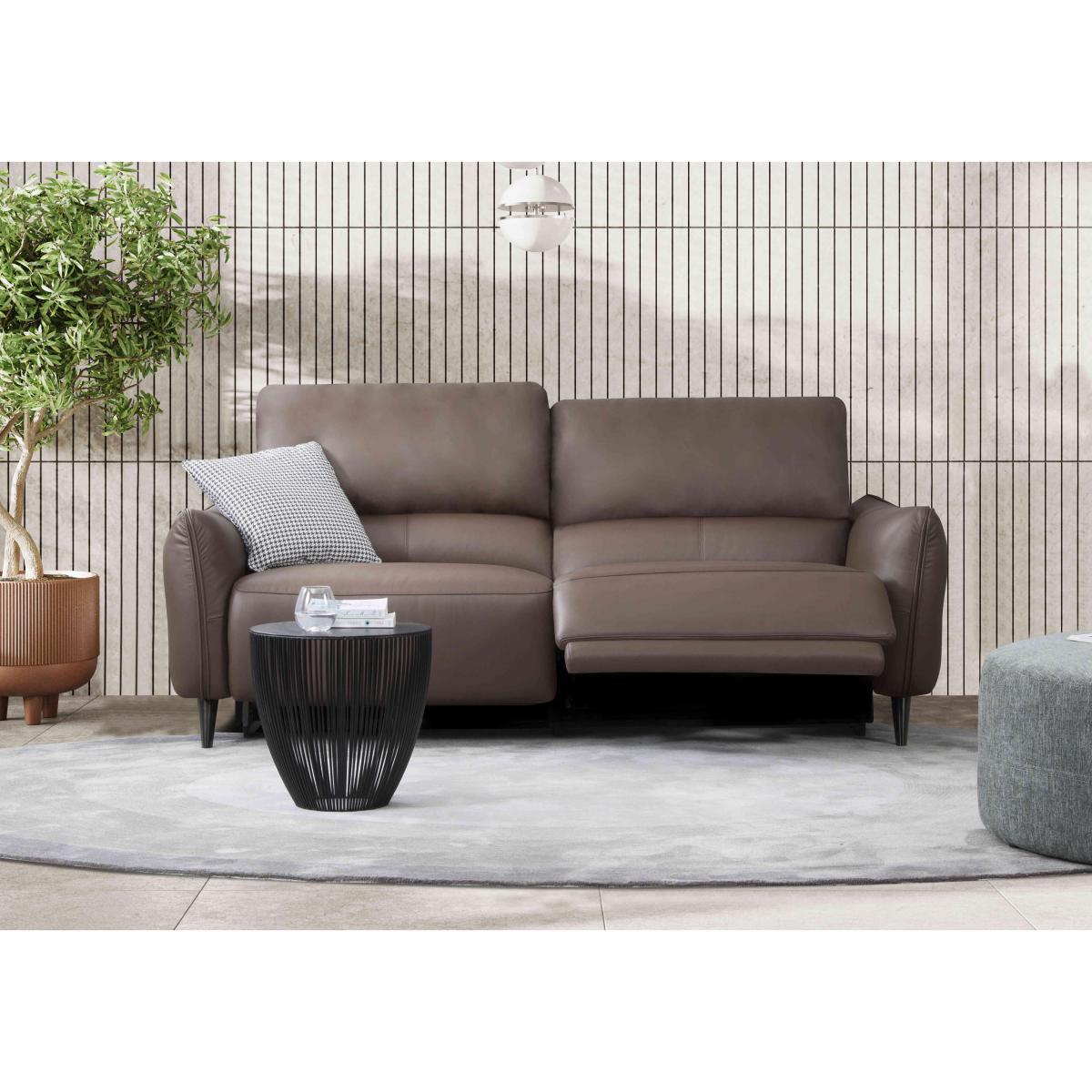 The design experts at Domicil have outdone themselves with the Maddox range of sofas, chairs and footstools in exceptionally beautiful leather and high-quality fabric. With cool curved arms, gunmetal grey legs and beautiful topstitching, the style is all modern but oozes high-quality traditional craftsmanship. And with sprung seats that bounce back into shape, wall-away power recliners with built-in USB ports and some serious lumbar and neck cushioning, instant relaxation is inevitable. There really is no doubt that this is a range that looks different – and feels different. Handcrafted exclusively for Furniture Village by Domicil using environmentally-friendly materials and processes. Life doesn’t get much more comfortable. This fabulous 2.5 seater has gorgeous curves and luxurious cushioning alongside sprung seats and power recliners. Why you'll love it For maximum style and comfort, choose this 2.5-seater leather power recliner sofa. Statement style with luxe cushioning, distinctive curved arms and gunmetal legs. Wall-away power recliners, sprung seats and a USB port for serious relaxation. Exceptionally soft 100% premium leather in a choice of two grades. Choose from a huge range of fashionable colours. Also available with battery-powered recliners and without recliners. Handcrafted for Furniture Village. This 2.5-seater leather power recliner sofa is part of the Domicil Maddox collection. What you need to know Medium comfort level. Seat suspension: no-sag spring. Seat cushioning: foam, inner coil. Back support: rubber webbing. Back cushioning: foam, inner coil. USB charging port is only available with the power recliner version of this sofa. Feet are removable. Please allow time for new recliners to ease. Minor gaps are necessary to ensure ease of recliner motion and may be exaggerated depending on floor type. Leather has unique marks and characteristics with variation in colour and texture. Leather softens with use. Smoothing the tops of leather cushions prevents signs of visual comfort. Please read our upholstery care guide for more advice.
