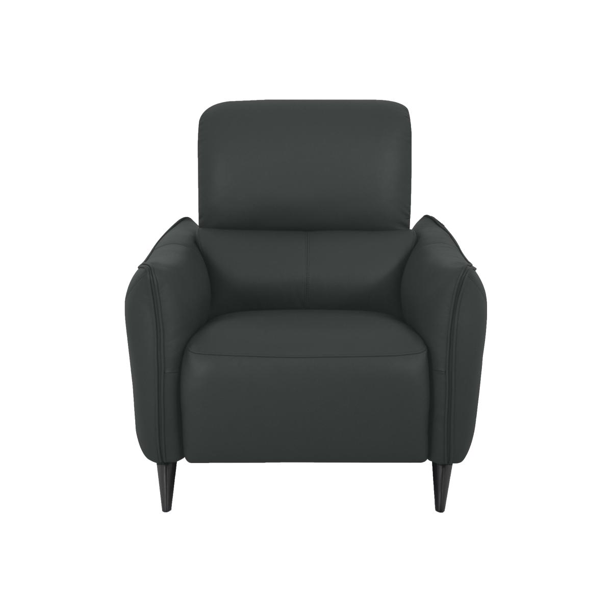 The design experts at Domicil have outdone themselves with the Maddox range of sofas, chairs and footstools in exceptionally beautiful leather and high-quality fabric. With cool curved arms, gunmetal grey legs and beautiful topstitching, the style is all modern but oozes high-quality traditional craftsmanship. And with sprung seats that bounce back into shape, wall-away power recliners with built-in USB ports and some serious lumbar and neck cushioning, instant relaxation is inevitable. There really is no doubt that this is a range that looks different – and feels different. Handcrafted exclusively for Furniture Village by Domicil using environmentally-friendly materials and processes. It may be an armchair but this leather power recliner chair from Domicil really can be the main living room attraction. Cool modern style, exceptional sprung-seat comfort. Why you'll love it Leather power recliner armchair delivers larger-than-life style and comfort. Statement style with luxe cushioning, distinctive curved arms and gunmetal legs. Wall-away power recliner, sprung seat and a USB port for serious relaxation. Exceptionally soft 100% premium leather in a choice of two grades. Choose from a huge range of fashionable colours. Also available with a battery-powered recliner and without any recliner. Handcrafted for Furniture Village. This leather power recliner chair is part of the Domicil Maddox collection. What you need to know Medium comfort level. Seat suspension: no-sag spring. Seat cushioning: foam, inner coil. Back support: rubber webbing. Back cushioning: foam, inner coil. USB charging port is only available with the power recliner version of this armchair. Feet are removable. Please allow time for new recliners to ease. Minor gaps are necessary to ensure ease of recliner motion and may be exaggerated depending on floor type. Leather has unique marks and characteristics with variation in colour and texture. Leather softens with use. Smoothing the tops of leather cushions prevents signs of visual comfort. Please read our upholstery care guide for more advice.