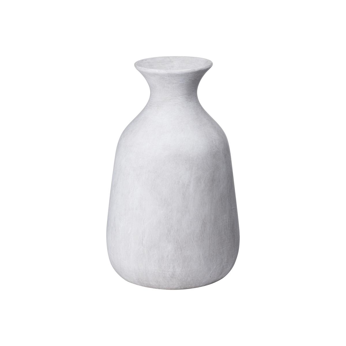 This is the Darcy Ople Stone Vase. A timeless, stoneware vase that will subtly layer texture into interiors. An elegant addition with matching items available. A perfect pairing with our faux eucalyptus stems. Please note, this vase's intended purpose is for faux flowers if customers wish to display real flowers in these they must use a florist's cellophane wrap to contain water.