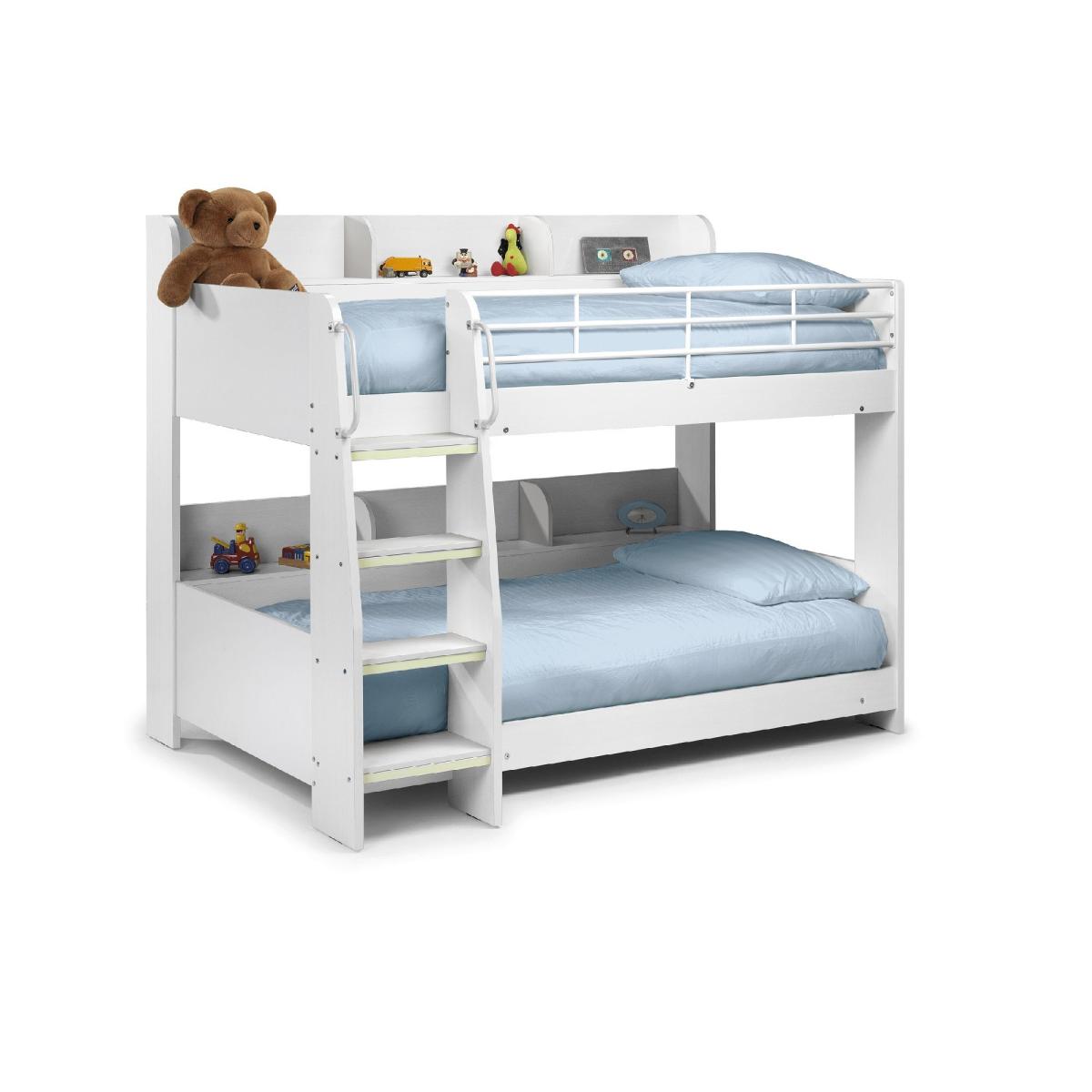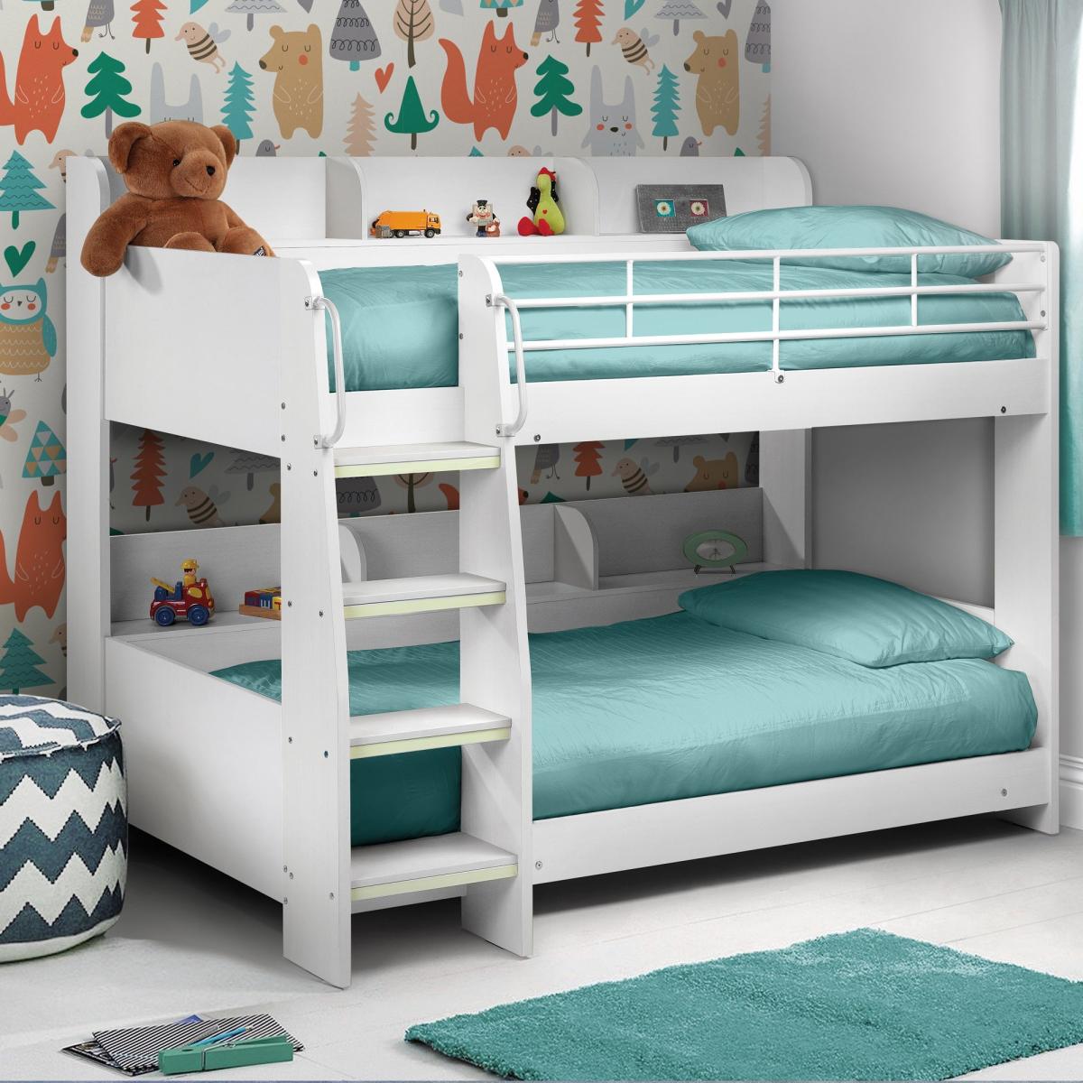 Additional shelving along the back of each bunk for extra storage Ladder features practical metal handles and sturdy, wide steps with a luminous strip for safe climbing Coordinating cabinets available from the Julian Bowen Radley range Modern design suitable for both boys and girls rooms Get ready to domino your way into dreamland with our stylish bunk bed! Featuring additional shelving for all your kids' treasures and a ladder with luminous strips for safe nighttime navigation, this bed is both practical and playful. Plus, with coordinating cabinets available from the Julian Bowen Radley range, you can create a cohesive and clutter-free bedroom that'll make bedtime a breeze!