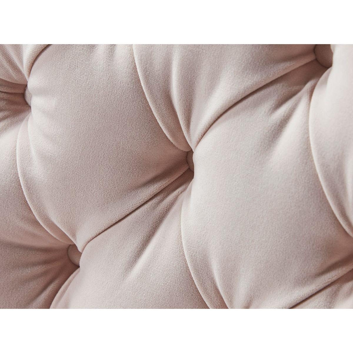 Our elegant Domme range of furniture features a feminine curved frame, scrolled arms and a buttoned backrest. Each piece in the range is upholstered in the fabric and colour of your choice, and comes with a deep, cushioned seat and elegant legs. The front two legs on the pretty armchair are hand turned and polished with castors for ease of movement, while the back two legs are rectangular for stability. The armless style makes this a charming seat for a living room or bedroom. The Domme range includes two seater and three seater sofas, an armchair and an ottoman. Pictured here in our Vintage Rose Velvet, our Domme collection can be upholstered in a choice of 33 distinctive shades and five fabrics to suit your style. Read our Upholstery FAQs View our full Upholstery Terms and Conditions