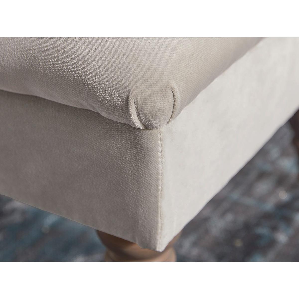 Our elegant Domme range of furniture features a feminine curved frame, scrolled arms and a buttoned backrest. Each piece in the range is upholstered in the fabric and colour of your choice, and comes with a deep, cushioned seat and elegant legs. The ottoman echoes the buttoned styling of the sofa and armchair, if you wanted to build a living room scene around the complete set. Our Domme collection can be upholstered in a choice of 33 distinctive shades and five fabrics to suit your style. Cotton Linen Our cotton linen mix comes in 10 carefully curated shades and has a brushed finish which leaves this plain weave durable, but still peachy soft to the touch. 63% cotton 37% linen Smart Velvet With the same luxurious look and feel of cotton velvet, this collection of 10 richly coloured velvets is a stain resistant and hardwearing option for busy homes. 100% polyester Herringbone In a choice of six chalky pastels and classic neutrals, this herringbone fabric features a subtle self-coloured weave for a textural finish. 25% cotton 25% linen 25% viscose 25% polyester Bouclé With three neutral colours to choose from, our bouclé fabric is springy to the touch and wonderfully soft, providing both depth and warmth. 80% polyester 10% acrylic 10% cotton Leather Supple and luxurious natural leather that has been lightly buffed and carefully brushed with oils and waxes to achieve a soft buttery feel. 100% leather For further information on the range, please select one of the following: Order a fabric swatch Read our Upholstery FAQs View our full Upholstery Terms and Conditions
