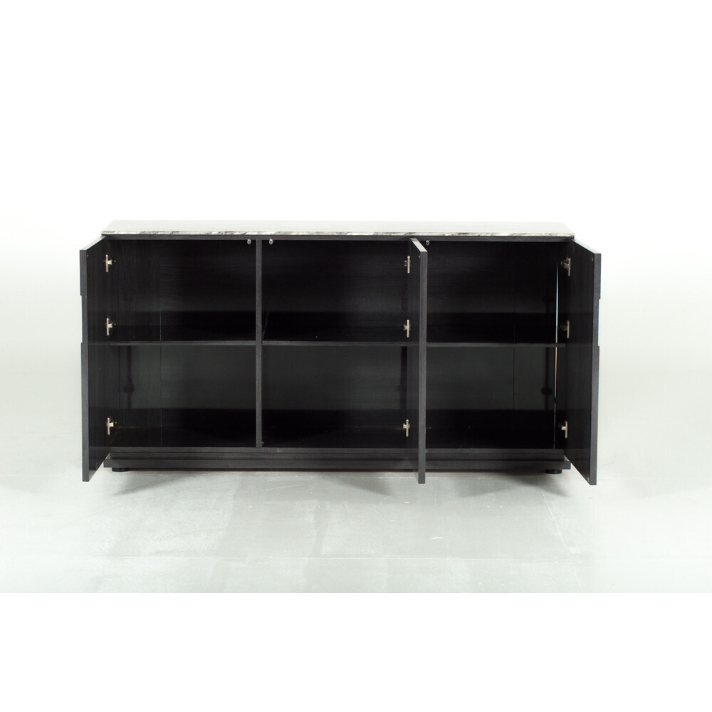 The Donatella Sideboard is a sleek and sophisticated storage unit, ideal for many styles of modern home. Its simple clean lines and luxurious marble tabletop combine to create a stylish addition to your home, which brings real function too. The grey marble coordinates beautifully with the dark wooden frame. Spacious storage incorporates a three door cupboard with adjustable shelves. Luxurious solid marble tabletop. Sturdy engineered wooden frame is built to last. Coordinates easily with the rest of the Donatella Collection. Ground floor delivery only.