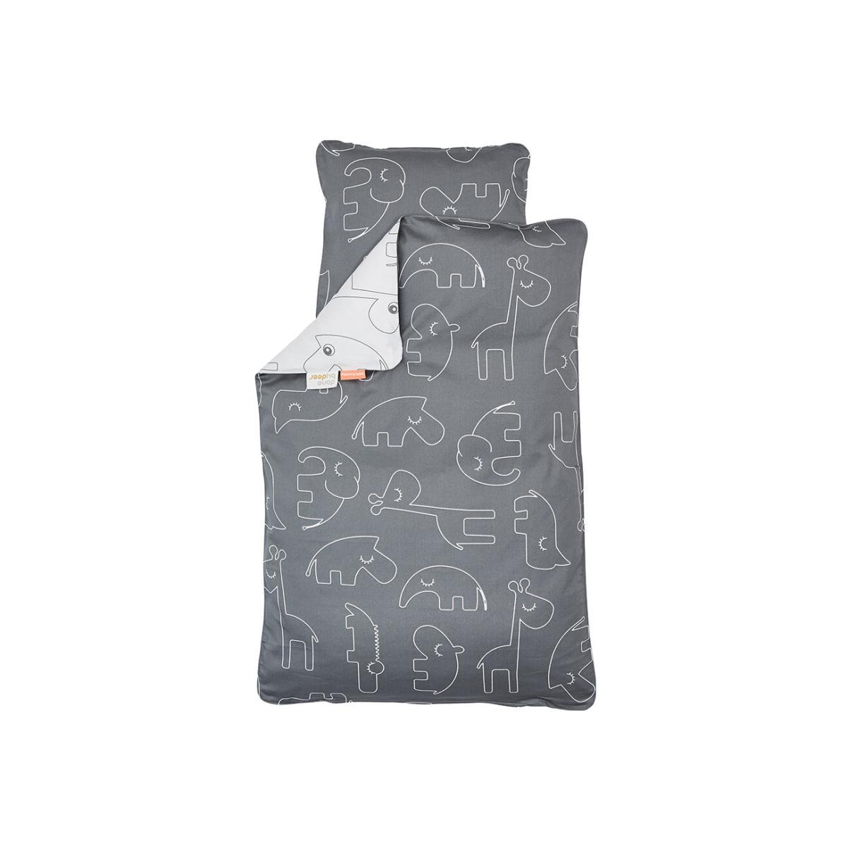 Bring playful prints home with this bed linen set from Done by Deer. Made from 100% cotton, it's wonderfully soft to the touch and features charming animal motifs. Pair with more accessories from the brand to complete your little one's sleeping space. Key features: * Material: 100% cotton * Duvet cover: 70x100cm * Pillowcase: 40x45cm * Grey colour * Hidden safety zipper * Oeko-Tex certified * Machine washable at 60 C * Do not tumble dry