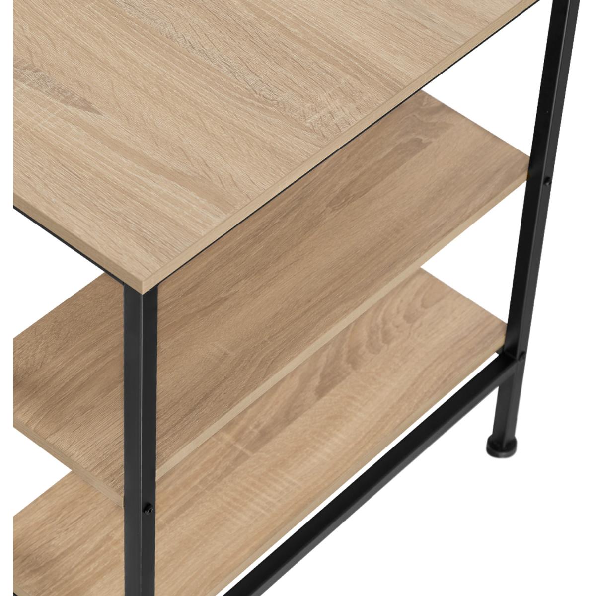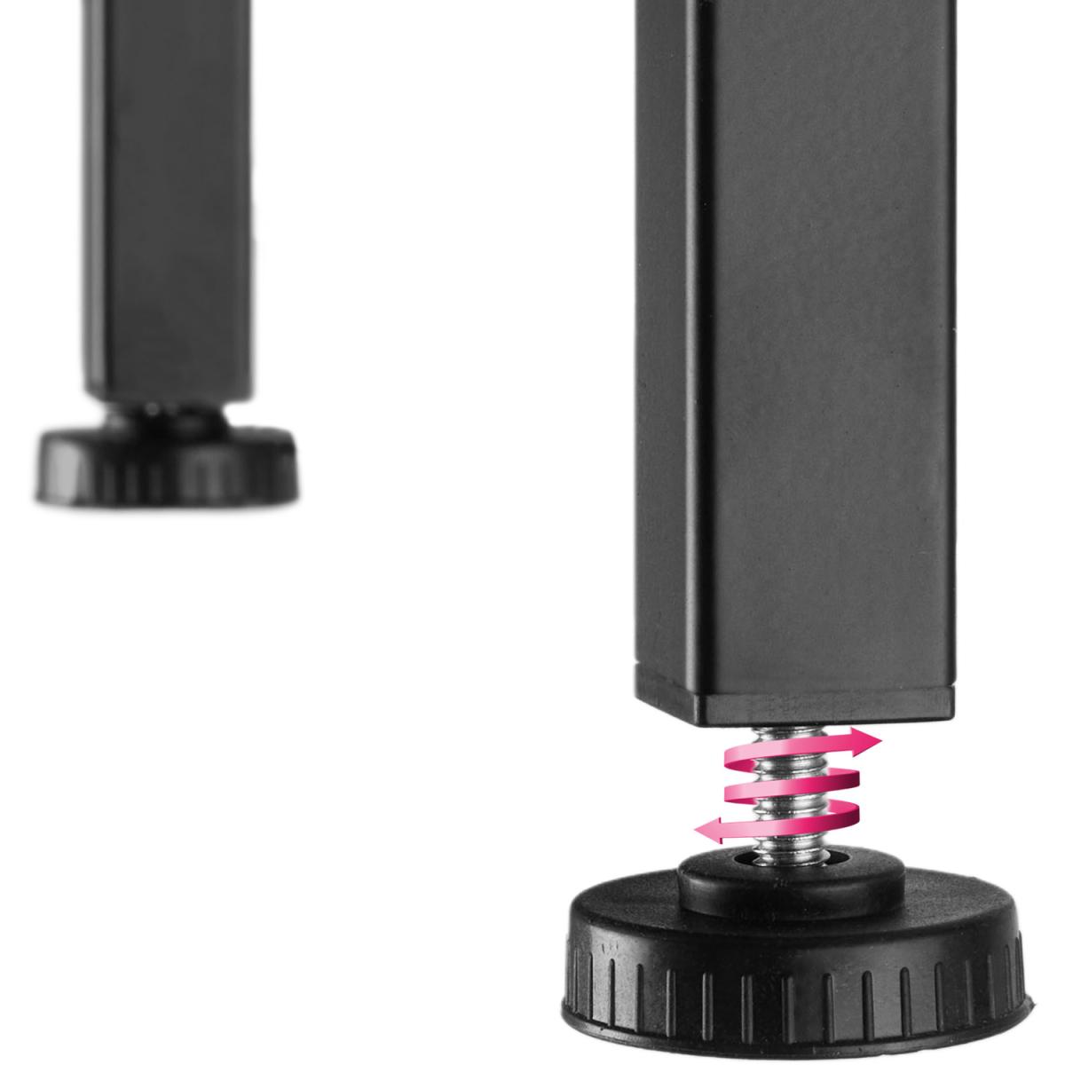 Create a solid basis for productive work with the rustic Donegal desk from tectake. Laptop, files, documents and other office utensils have plenty of storage space on the large table surface, and the two side compartments offer additional space to store and access other regular use accessories. With its black colour, the powder-coated steel frame stands out from the wood decor of the office desk surfaces, creating the typical material mix of the industrial look. Excellent legroom, a secure stand on six adjustable plastic feet and a high load capacity round off the desks qualities and underline its robust character. Complete your home office and make work run more smoothly with this desk from tectake.