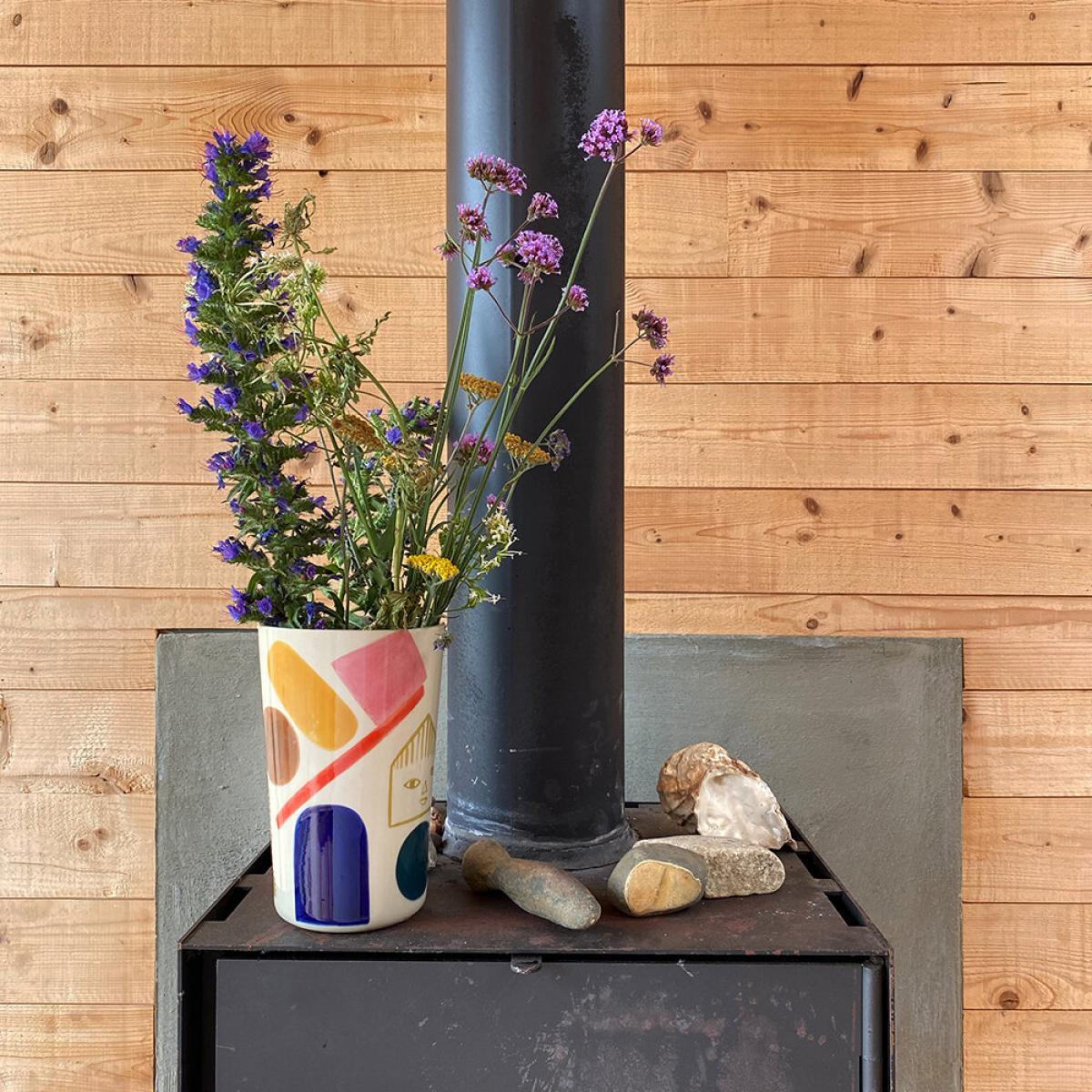 I love the playful nature of this vase - it brings a touch of whimsy to any space. It works particularly well in contemporary or eclectic interiors, where its bold colours and artistic design can truly stand out. For styling tips, I’d suggest pairing it with simple, monochrome bouquets to let the vase stand out, or placing it on a neutral shelf or side table as a standout piece. Its sizeable form makes it versatile, perfect for showcasing larger blooms or even standing alone as an artful decorative object. It’s a great way to introduce colour and personality to kitchens, living rooms, or even a cosy office nook.