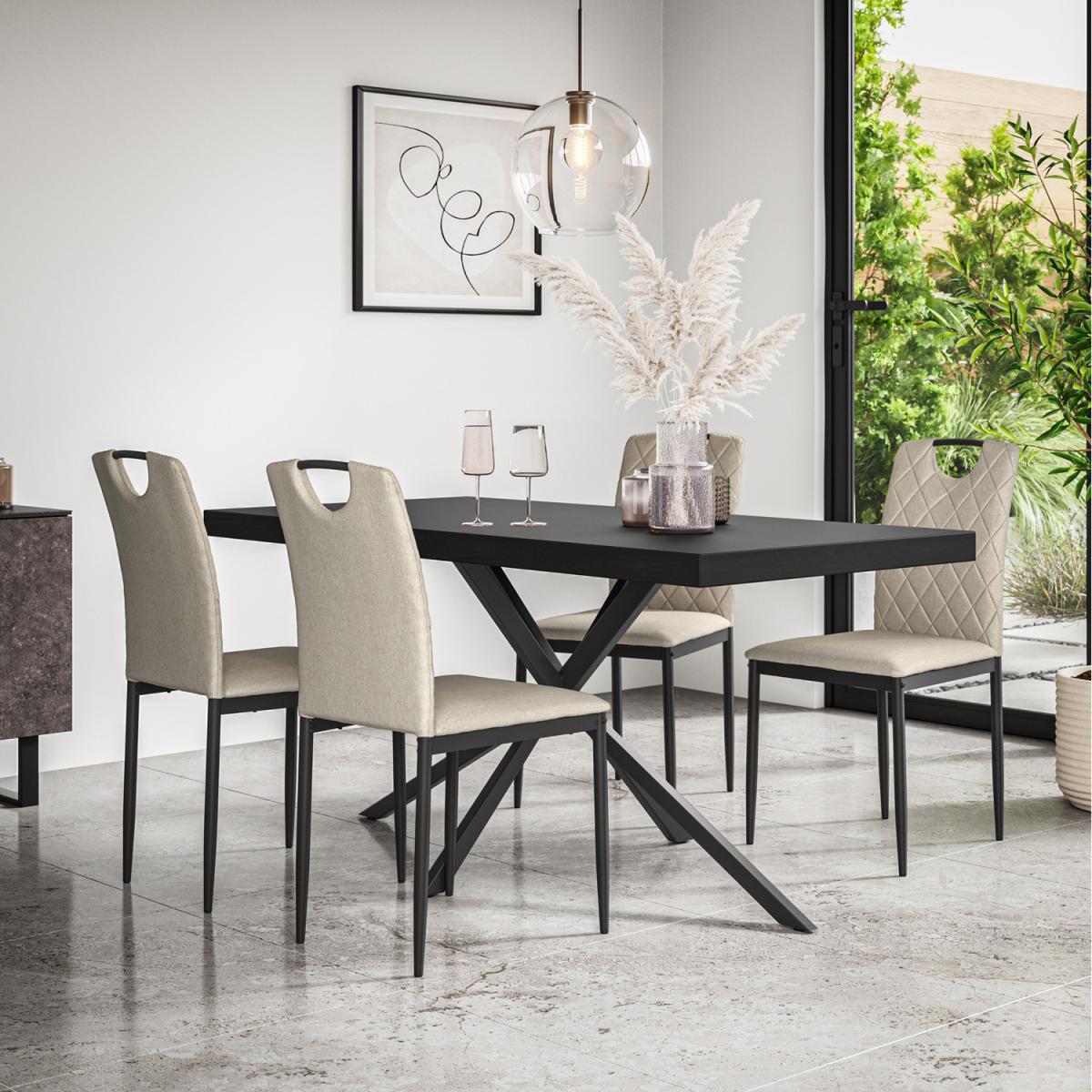 The Donni Dining Table is a beautifully crafted rectangle dining table with a timeless, minimalist design. The table boasts an elegant hardwearing, scratch-resistant Black Oak effect table top that brings warmth and natural charm to any dining space, perfectly complemented by unique, sturdy, solid Black metal legs for a modern contrast. The Donni's simple yet sophisticated design makes it a versatile centrepiece, ideal for both casual meals and formal gatherings. The Donni Dining Table can seat 4-6 people, and yet its compact rectangle shape is perfect for maximizing space while creating an inviting and intimate dining experience. The Donni Dining Table is available in a range of tops (Grey, White Marble Effect, Oak Effect, and Black), with Black metal legs. With the Monza Dining Chair, the Donni Dining Table will be the complete set. With a choice of Linen and Faux Leather in various colours, this sleek modern Dining chair complements the Donni Dining Table brilliantly. Available as a set of 4 or 6 with the Donni Table.