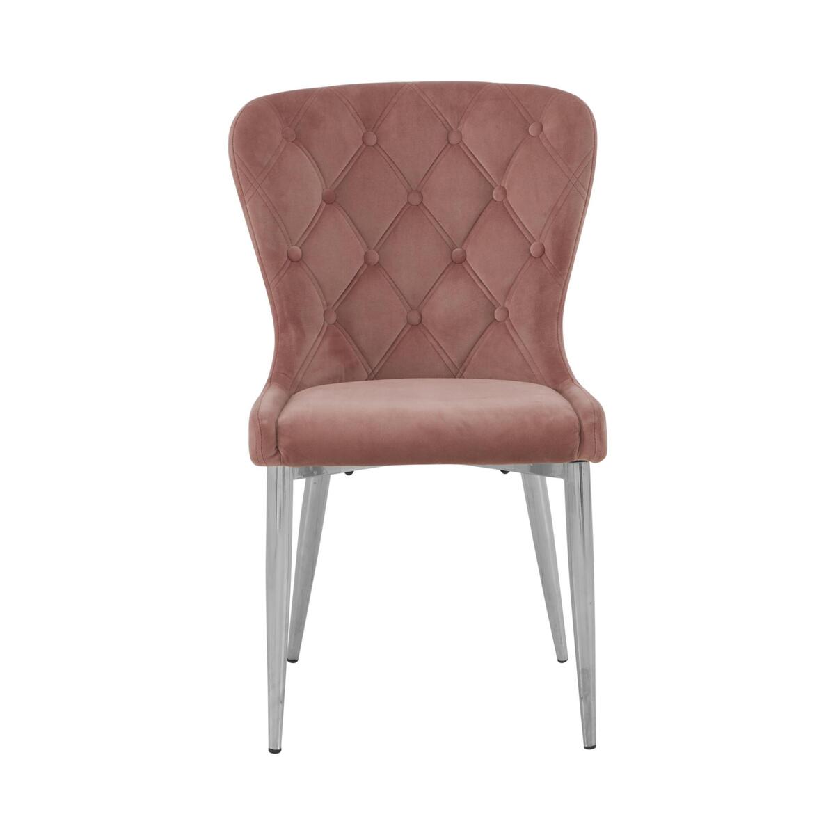 Dine in velvet luxury. The Donnie chair’s curved, buttoned back and cushioned seat will spoil you and your guests. In a choice of three gorgeous colours. Why you’ll love it. Lavishly buttoned, with a grandly curved back. Exquisitely tailored, softly cushioned. Upholstered in tactile velvet. In contemporary silver, navy or blush velvet. Polished chrome or matt black metal legs. Coordinates perfectly with the Olympia round tables. What you need to know. The black or chrome finish legs are made of strong steel. Cushioned seats and backs are foam-filled. Flattening and shading of heavy wear areas on velvet is unavoidable. Pile fabrics may be vacuumed lightly using the curtain attachment. Brush regularly in the direction of the pile with a soft brush.