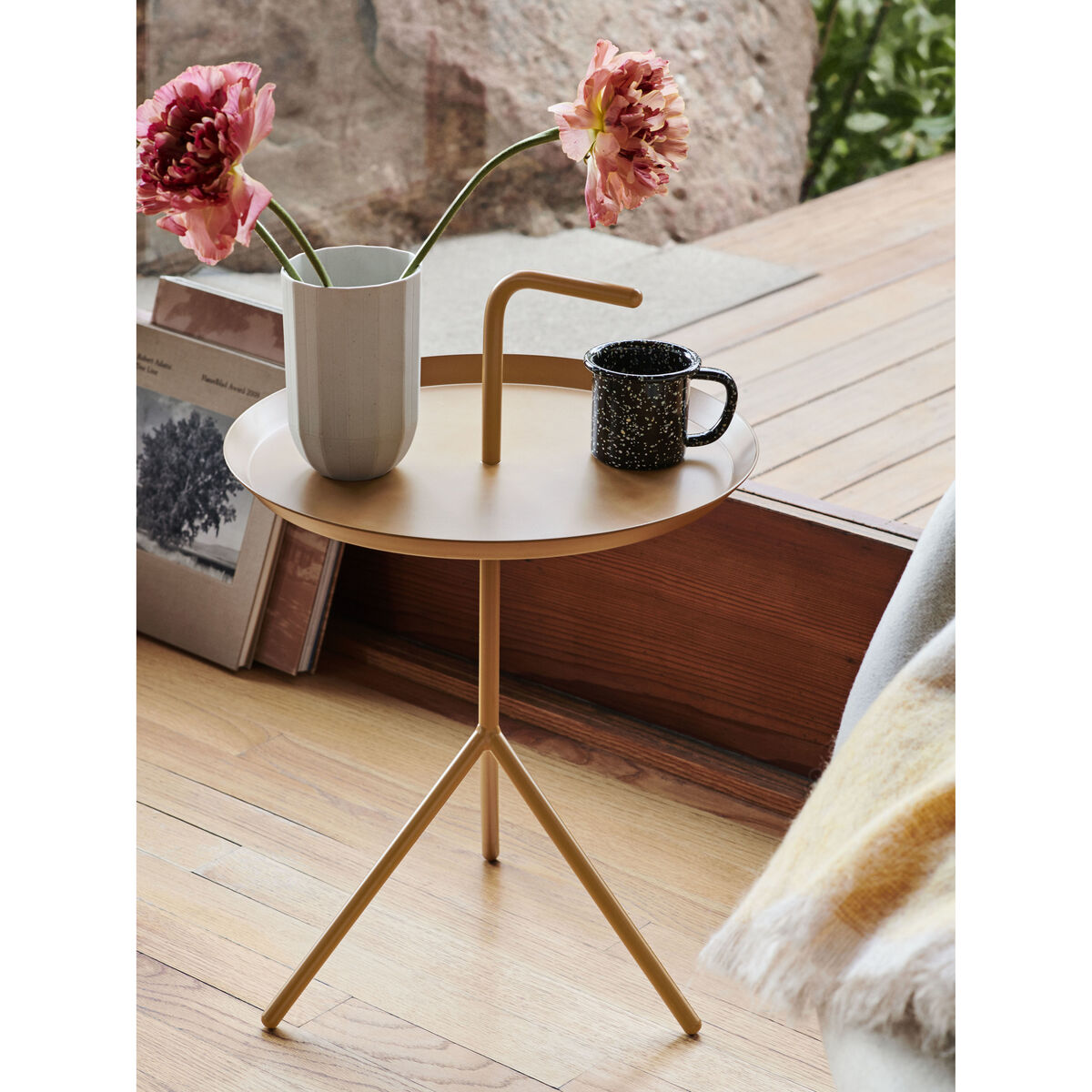 Available in some very modern colours, this go-anywhere, easy-to-live-with little table can be transferred from the kitchen to the living room as you wish! Made of lacquered steel, "Don't Leave Me" is characterised by its tripod base and tubular structure that passes through the top in its centre...A true extension of the structure, the handle ensures a good grip of the product while guaranteeing perfect balance during transport...It is this unique design that makes the product so very original and functional! This highly durable coffee table is there for all our moments of relaxation.
