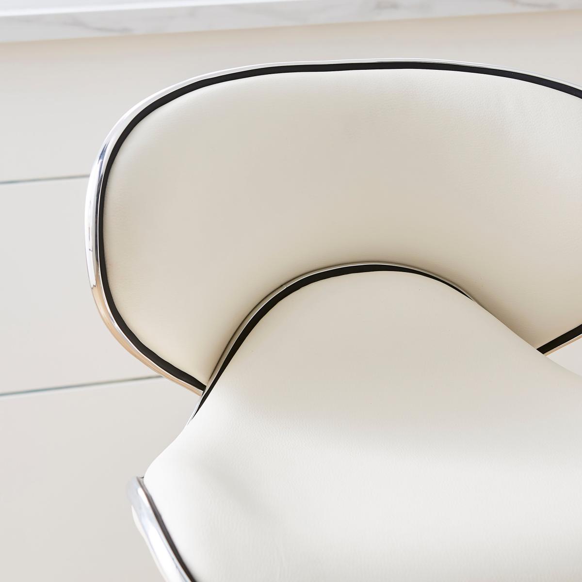* Faux leather upholstery* Gas lift mechanism* Foam filled seat* Chrome effect base This bar stool is upholstered in a sleek faux leather fabric, bringing a touch of modern sophistication to any space. The super-smooth gas lift height adjustment system allows you to effortlessly adjust the seat height from 60cm to 75cm, providing excellent support for your knees and enhancing overall seating comfort.