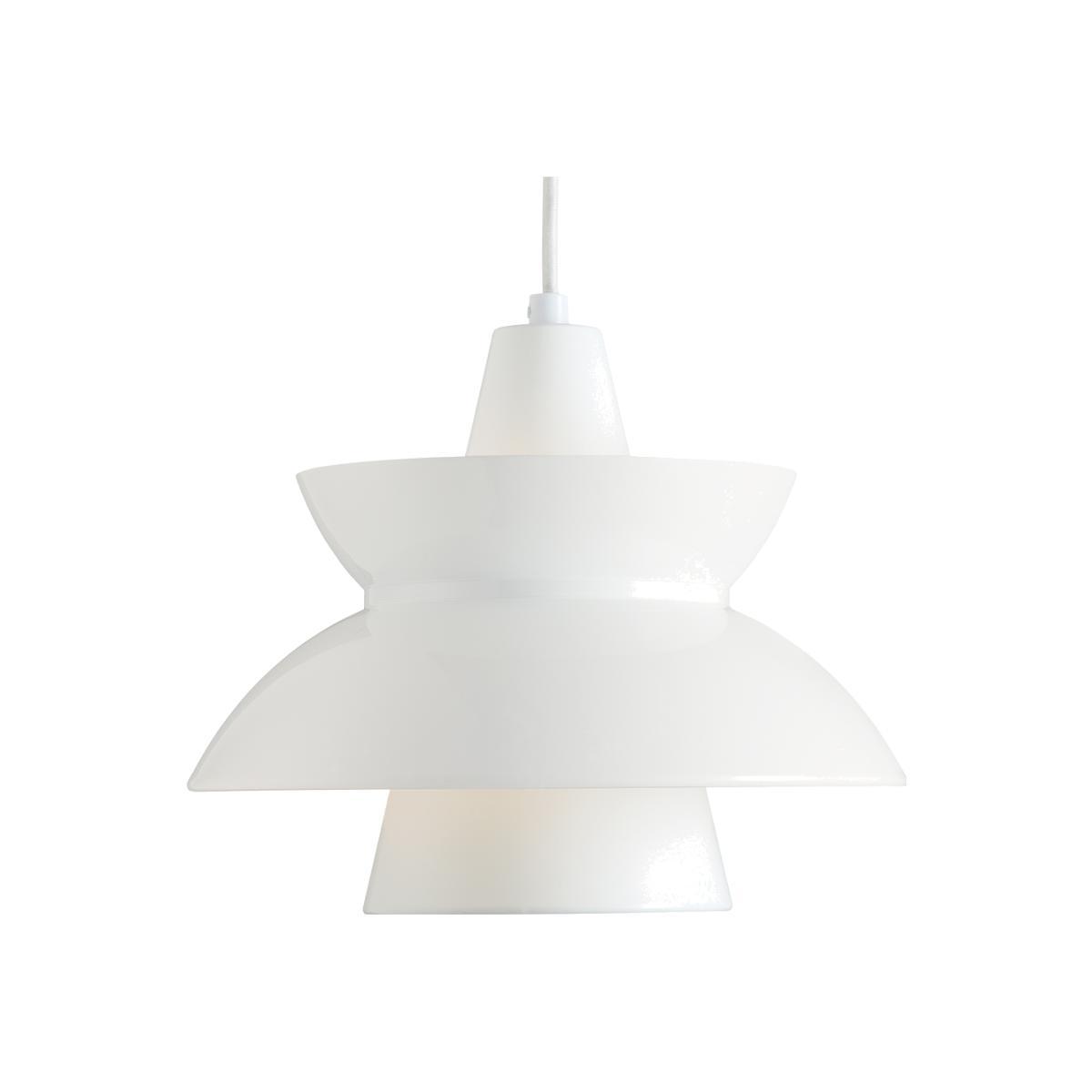 Originally designed during the 1950s by Louis Poulsen in collaboration with the Navy Buildings Department, the Doo Wop Pendant Light has now been re-released by his eponymously-named design house in a white finish. The Doo Wop Pendant features a white powder-coated spun aluminium shade that has been expertly turned by hand and finished with a slight arch that lends the design its instantly recognisable silhouette. Completed with a white powder-coated die-cast aluminium diffuser that directs light downwards, the pendant is suspended from a white fabric cord and a coordinating ceiling rose. A truly iconic design, the Doo Wop Pendant Light looks particularly striking when hung in a cluster over a countertop or dining table. Requires: 1 x Max 60W E27 bulb (not included).