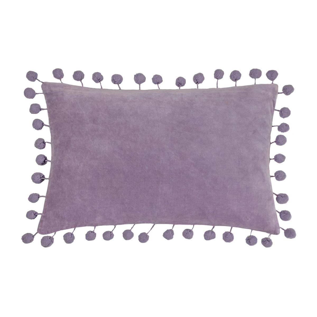 Dora Rectangular Velvet Pom Pom Cushion Cover - Lilac