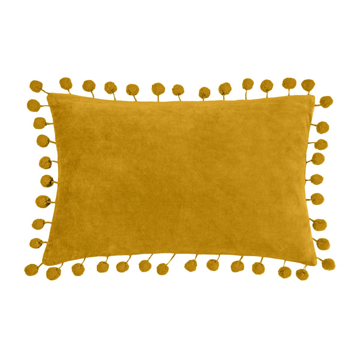 Dora Rectangular Velvet Pom Pom Cushion Cover - Ochre