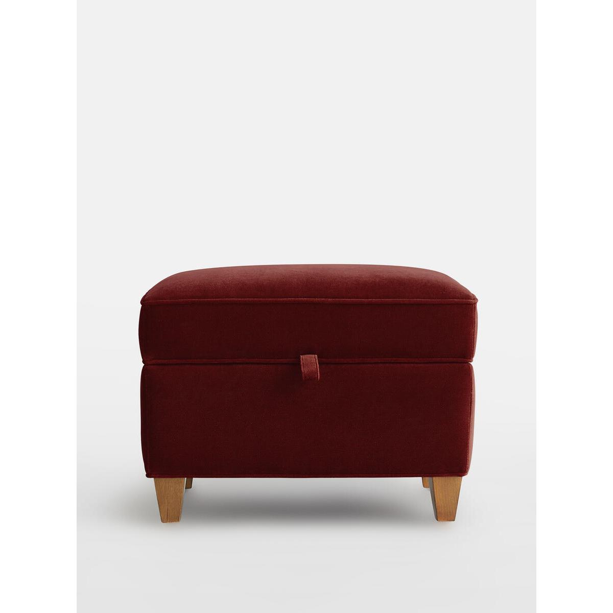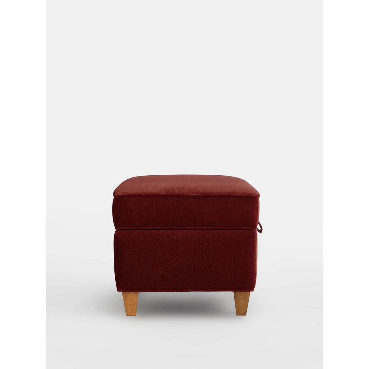 Designed to match the Dora Chair, this footstool is constructed from a cotton velvet for a soft feel. It's shaped into a boxy silhouette and offers ample storage space to house books and throws. Incorporate it into your living room set-up to bring a touch of our Greek Street House to your home. Storage space Tapered legs Match with the Dora Chair Inspired by our Greek Street House