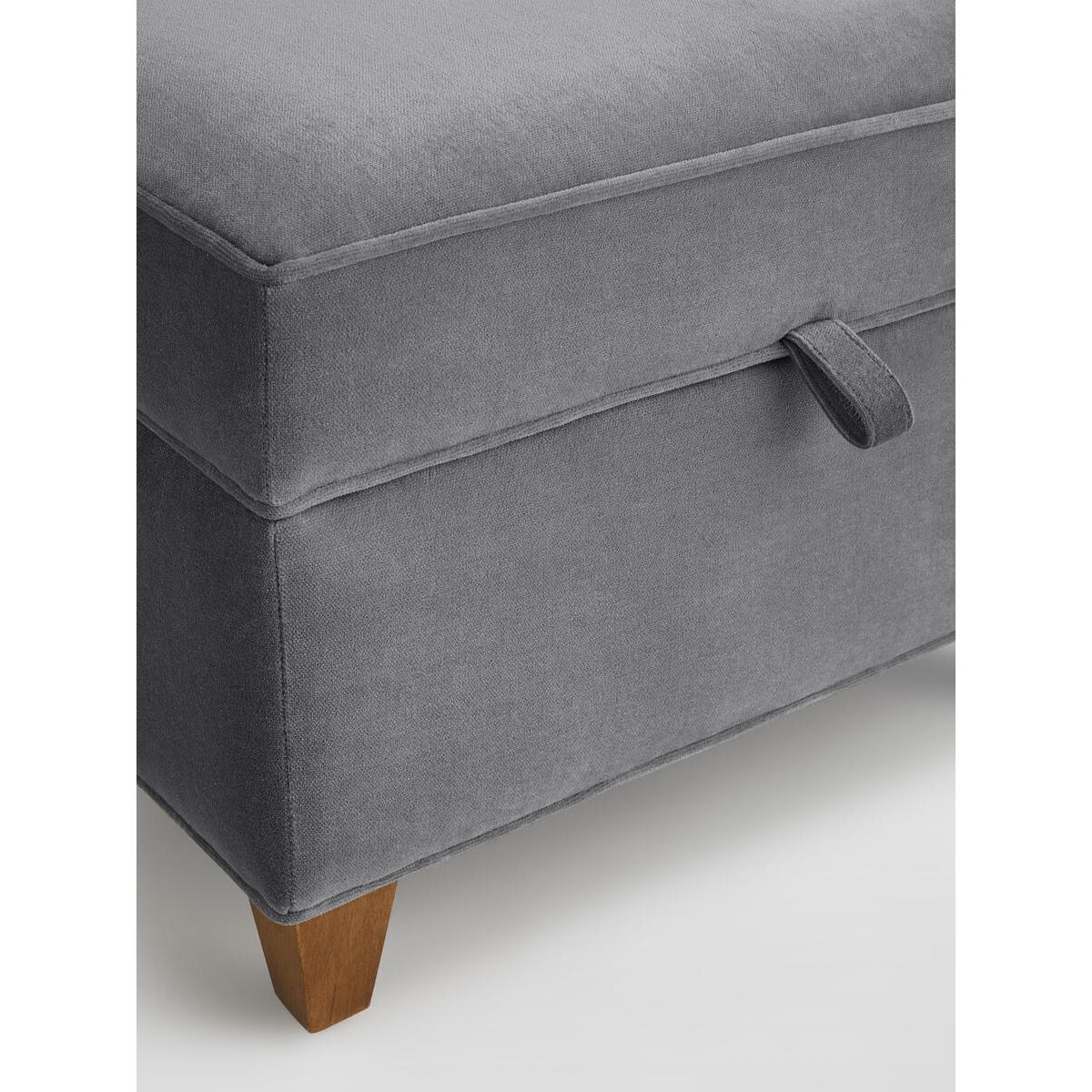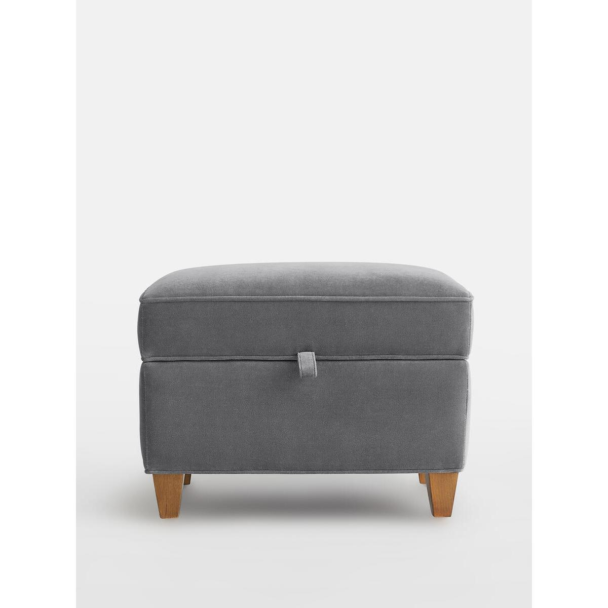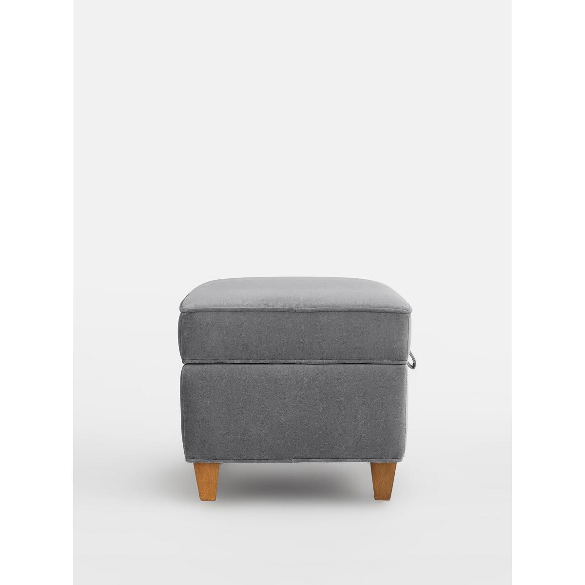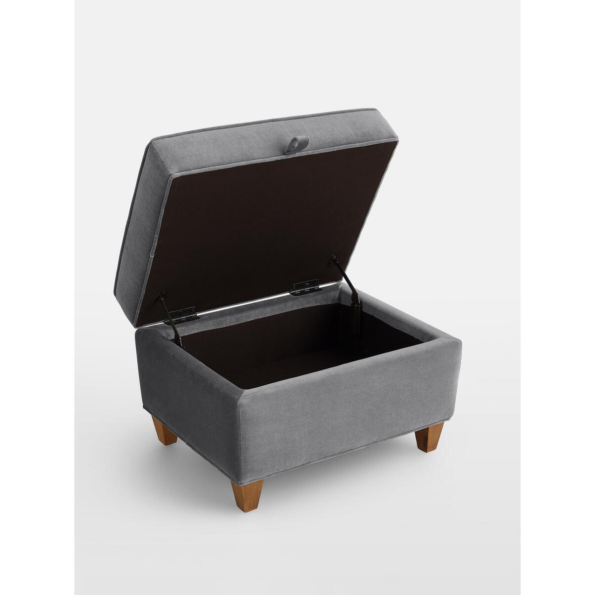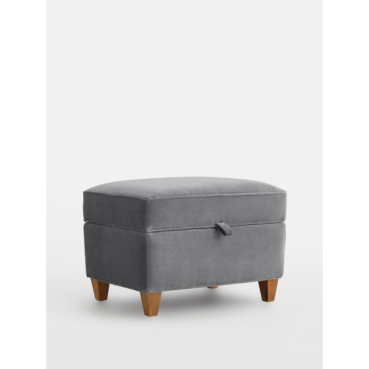 Designed to match the Dora Chair, this footstool is constructed from a cotton velvet for a soft feel. It's shaped into a boxy silhouette and offers ample storage space to house books and throws. Incorporate it into your living room set-up to bring a touch of our Greek Street House to your home. Storage space Tapered legs Match with the Dora Chair Inspired by our Greek Street House