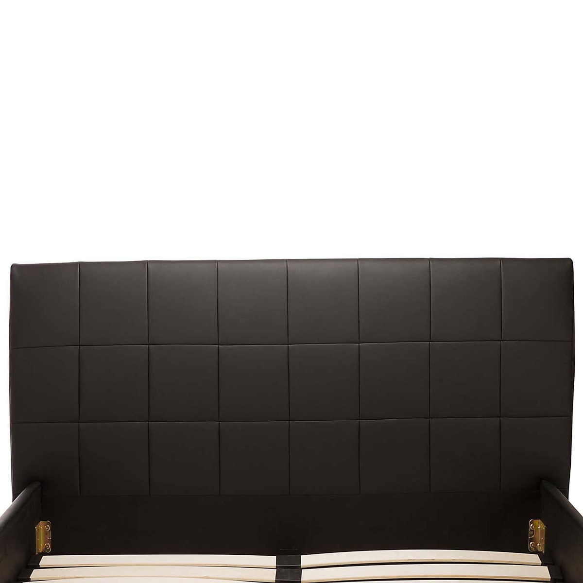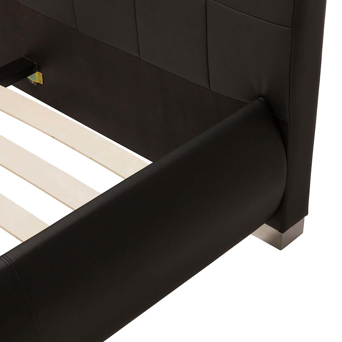 Impress your loved one with the Dorado Black Faux Leather Bed Frame, a seriously stylish bed frame with gorgeous black faux leather upholstery. This bed frame features a curved headboard and attractive foot end that will make it look superb in any setting. The sprung slatted base offers more support in addition to helping improve mattress longevity. Sleek chrome feet give you a perfect finishing touch.