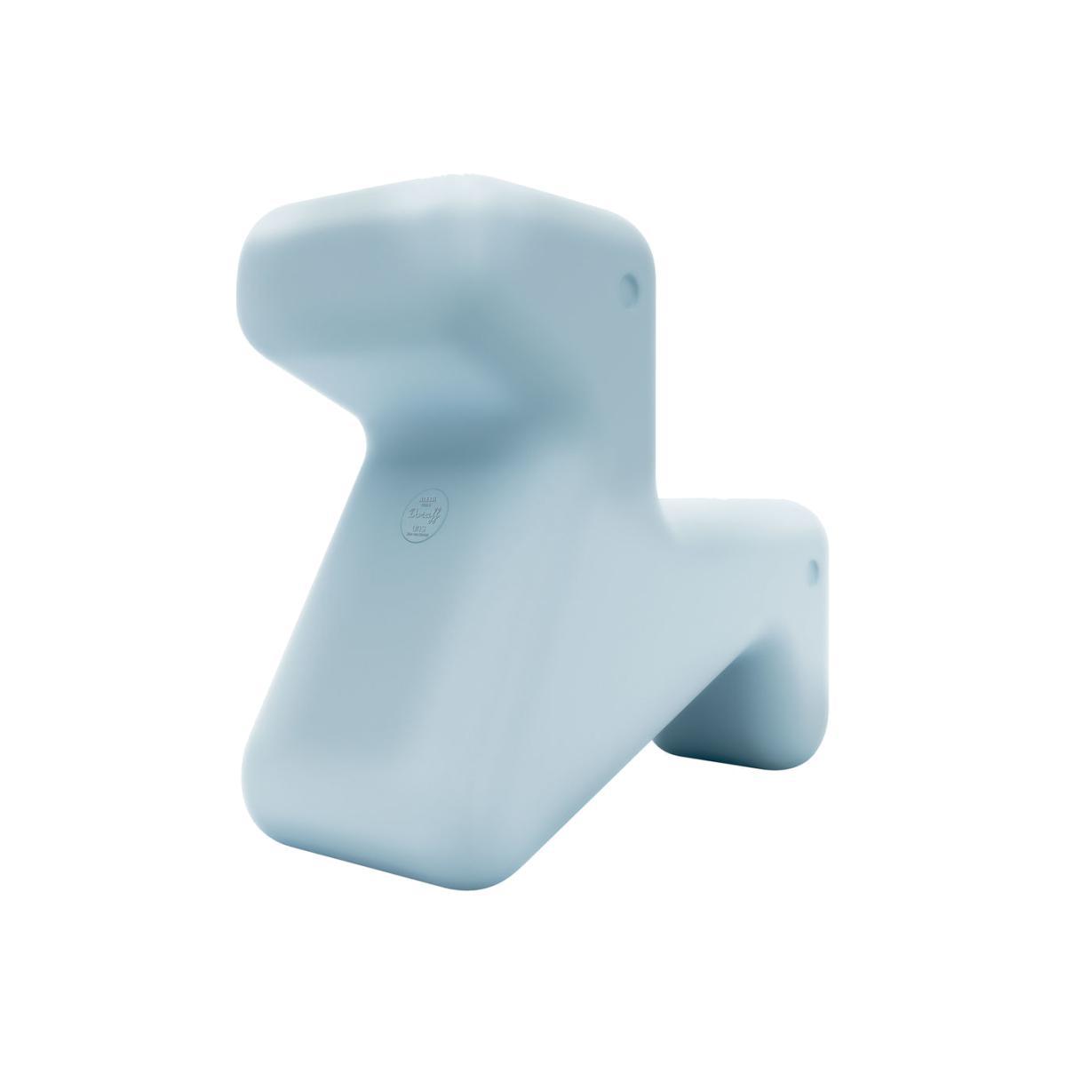 Design playmate. The famous Dutch architect, Ben van Berkel, took inspiration from his personal experience as a parent to create Doraff. This colourful, highly fun and versatile piece of furniture is a real springboard for toddlers' imagination, who will delightedly ride it. Doraff was designed in accordance with children's needs, to stimulate this fundamental journey, which, via active play, develops their creativity and their independence. Doraff is a piece of furniture that is meant to be handled: you turn it one way and the other to discover all its features. Depending on how it is positioned, Doraff looks like the stylised outline of a dog (in the lower position) or a giraffe (in the higher position). Its hybrid and polymorphous form leaves it completely up to the children’s imagination and creativity. Doraff can be used for different purposes, inviting children to follow their wonderful imagination. Placed such that it looks like the abstract form of a giraffe, it offers a high and practical backrest, but the child can also ride it like a horse and hug its long neck. When Doraff is in the lower position, evoking a dog, the top of the head serves as a small table: the child can sit down while using the section corresponding to the head like a table top on which to play, draw, eat or enjoy a snack. Made from 100% recyclable polyethylene, Doraff is lightweight, sturdy and can be used outdoors. Its rounded lines and the lightness of the plastic material are safe for toddlers. It is designed to ensure complete stability when it is used as a seat by children. Doraff serves as both a seat and a sculpture: highly decorative, this stylised animal with clean lines proudly stands out, decorating the room with its original presence. Doraff is a seat, but also a furniture element which highlights the space in which it is set up: a presence with an original and colourful design which enriches the space. The designer, Ben van Berkel: "Doraff is a new kind of fun furniture which evokes both the shape of a dog and that of a giraffe, in the form of a versatile object for children. At once a chair, a table and a family presence, Doraff is also able to stimulate children's imagination through play. Children can imagine they are riding a giraffe or playing with a dog, or they can easily flip over the unit to use the different surfaces to play read or enjoy their snack on. Doraff is a hybrid concept, halfway between a piece of furniture and a sensory object, in addition to being an object that can be used in a variety of contexts.