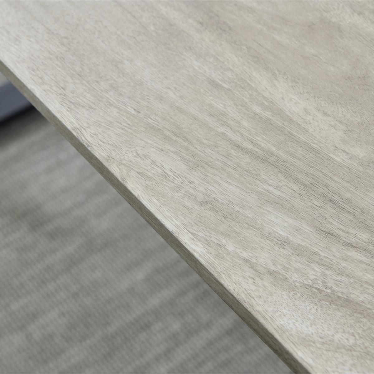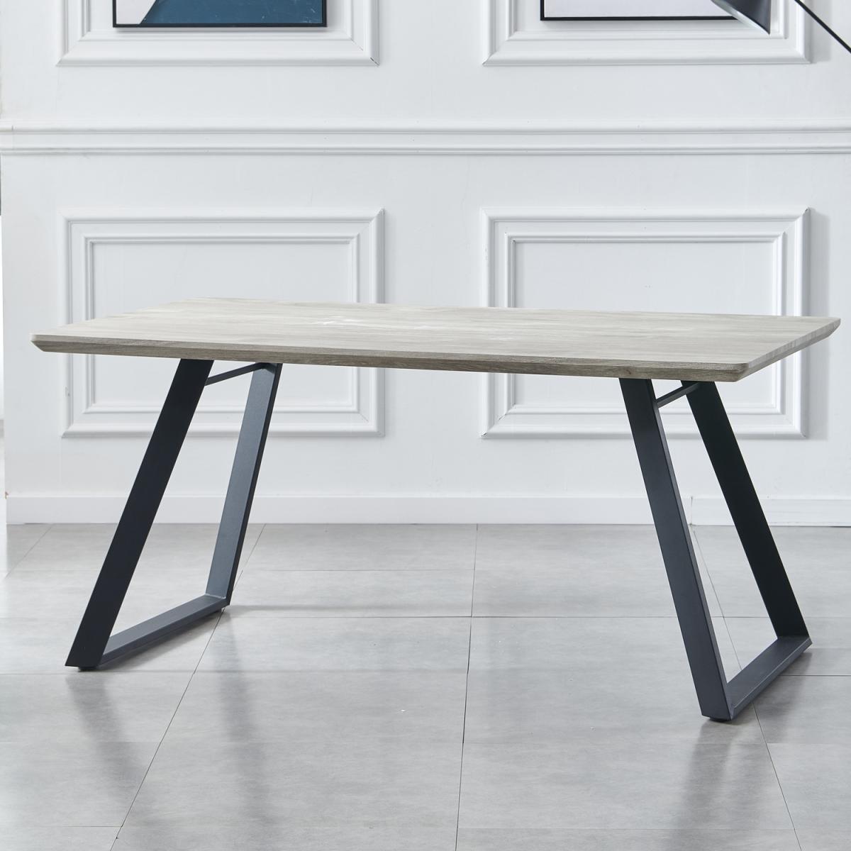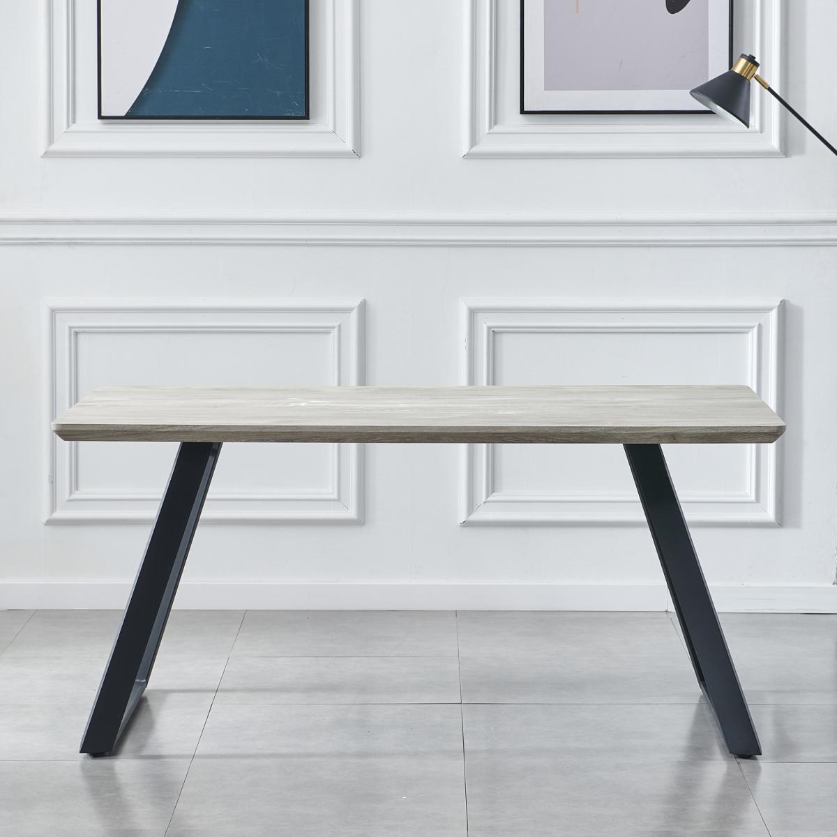 With its contemporary industrial styling, the Dorchester dining table has a light wood effect that contrasts beautifully with the black powder-coated frame for a finish that is perfect for any home.