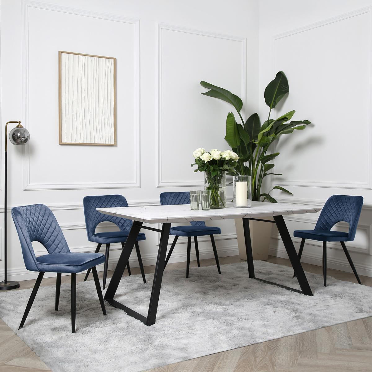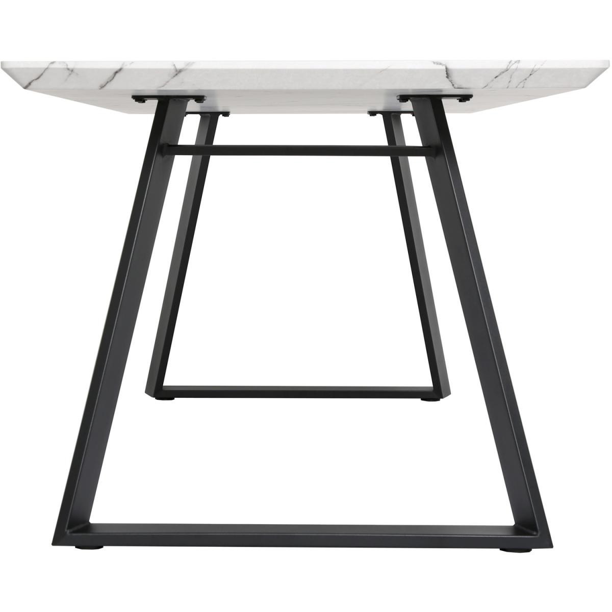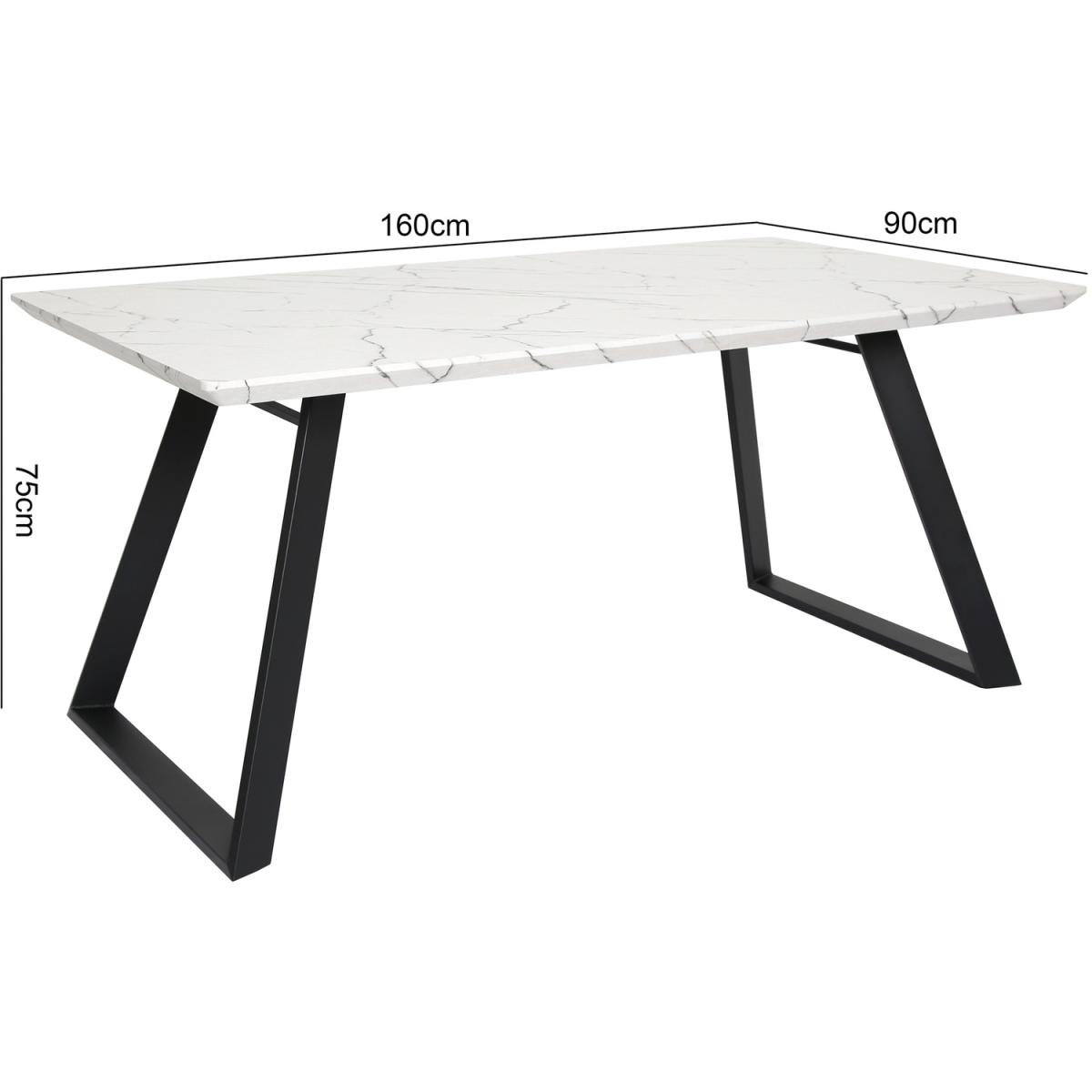 Offering a stunning contemporary look, this dining table has a modern and classic touch that blends into any interior decoration style. It's a highly versatile table with sturdy metal legs made with tube-like framing. The legs which are slanted outwards are covered with black powder coating to ensure durability and improve its beauty. This dining table top comes with a sleek finish that makes it the perfect furniture for any indoor space. With its space efficient dimensions, our marble dining table is a highly functional and unobstructive piece that is ideal for small and large spaces. This dining table with black metal frame is lightweight and easy to assemble, allowing you to use and store it in any corner of your home. It's solidly constructed to prevent wobbling movement, so you can enjoy its great value.