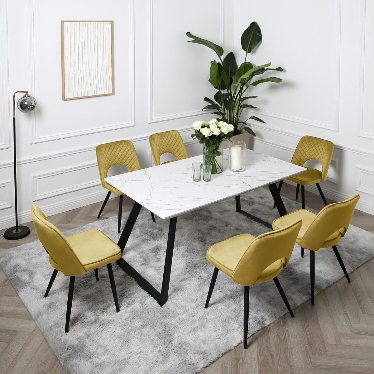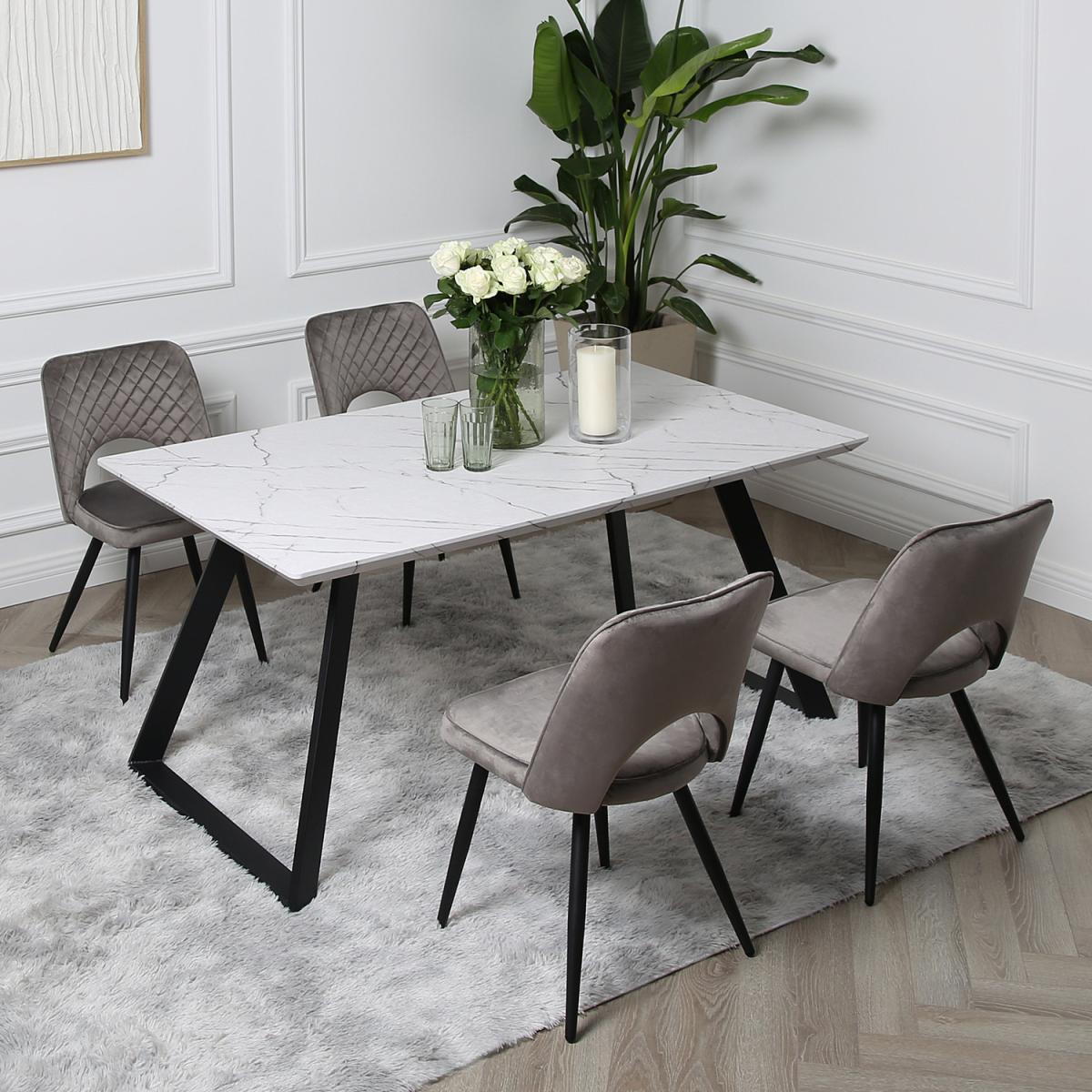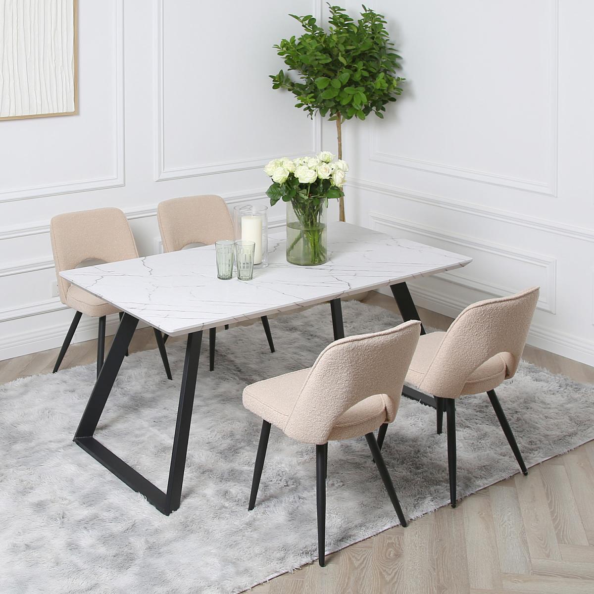Offering a stunning contemporary look, this dining table has a modern and classic touch that blends into any interior decoration style. It's a highly versatile table with sturdy metal legs made with tube-like framing. The legs which are slanted outwards are covered with black powder coating to ensure durability and improve its beauty. This dining table top comes with a sleek finish that makes it the perfect furniture for any indoor space. With its space efficient dimensions, our marble dining table is a highly functional and unobstructive piece that is ideal for small and large spaces. This dining table with black metal frame is lightweight and easy to assemble, allowing you to use and store it in any corner of your home. It's solidly constructed to prevent wobbling movement, so you can enjoy its great value.
