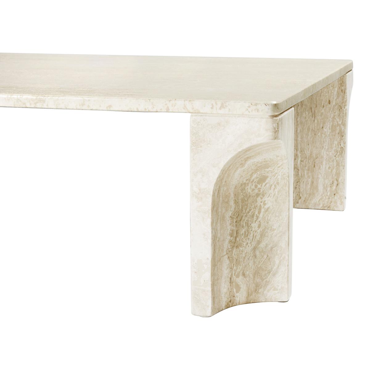 The Gam Fratesi duo continues with its exploration into the aesthetic and functional aesthetics of the stone. Inspired by antique columns, the Doric coffee table evokes the architectural traditions of the classic era. The Doric coffee table is named after the Doric order: the oldest and most minimalist of the Greek architectural orders. The Doric architecture is characterised by the retention, symmetry and simplicity, with decorative elements generally limited to the vertical grooves so closely associated with the Doric column. The determining characteristic of the Doric table is the inward curve of the legs, which is the result of the material subtraction of a simple shape. What could have been a monolithic profile with hard edges has been given an unexpected, lightweight and soft look that seduces while sculpting each of its four legs - a modern reinterpretation of the grooved details that can often be found in the Doric column. By re-contextualising this unique architectural detail in a piece of furniture, Gam Fratesi has succeeded in imbuing the design with a sense of history which counterweights its resolutely modern look. Whilst the table's surface showcases the natural beauty of the stone, its legs demonstrate the sculptural quality of the piece and emphasise the level of expertise that contributed to its creation. Stine Gam and Enrico Fratesi, Gam. Fratesi: "By reinterpreting a characteristic of classic architecture, the Doric table adds the weight of history into a modern environment. The particular shape of the leg manages to be rigid and formal whilst also being soft and decorative. In the grooved detail, a solid stone element becomes ornamental while conserving the overall geometry of the design." The table is available in two types of natural stone, each with its own, distinctive colour. The travertine version is a magnificently nuanced neutral beige, whilst the limestone is white, strewn with a bold, electric grey which creates a more dramatic pattern. Each piece produced in these stones is unique, and the ancient history of Earth is etched into its surface.