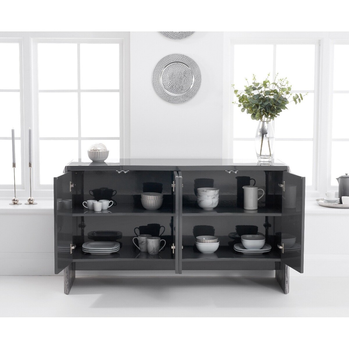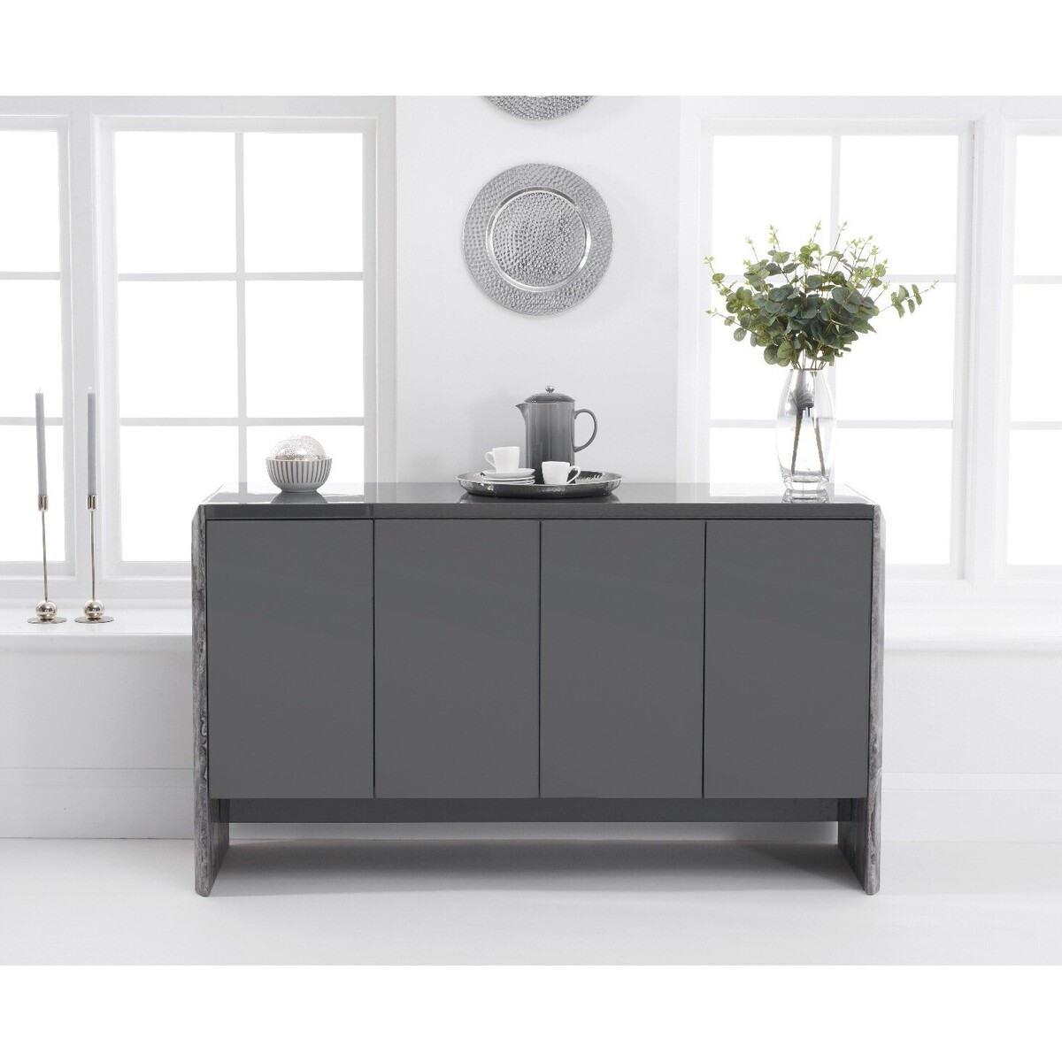 If you’re looking for the ‘wow’ factor then look no further than the Dorit range! An opulent collection that guarantees a luxe look for your home, the 140cm Dorit sideboard is crafted from grey marble - adding a touch of elegance to any room. This piece has four doors and a minimalist modern finish. Four doors gives plenty of storage space with good access. Truly elegant and a luxe looking collection Solid marble construction. On-trend grey colouring