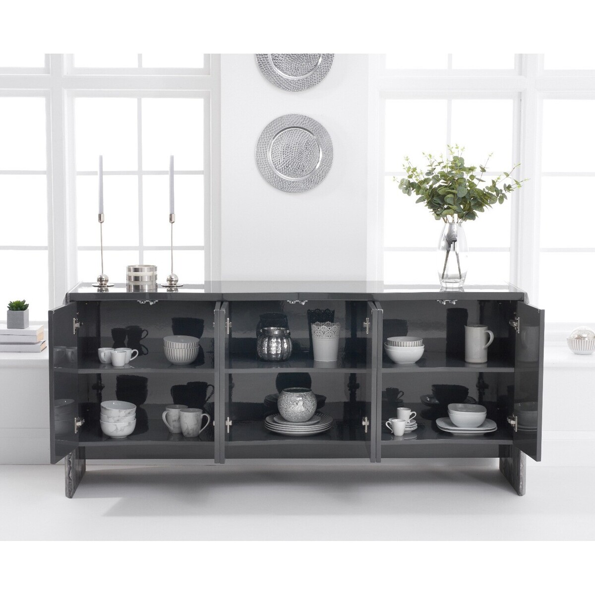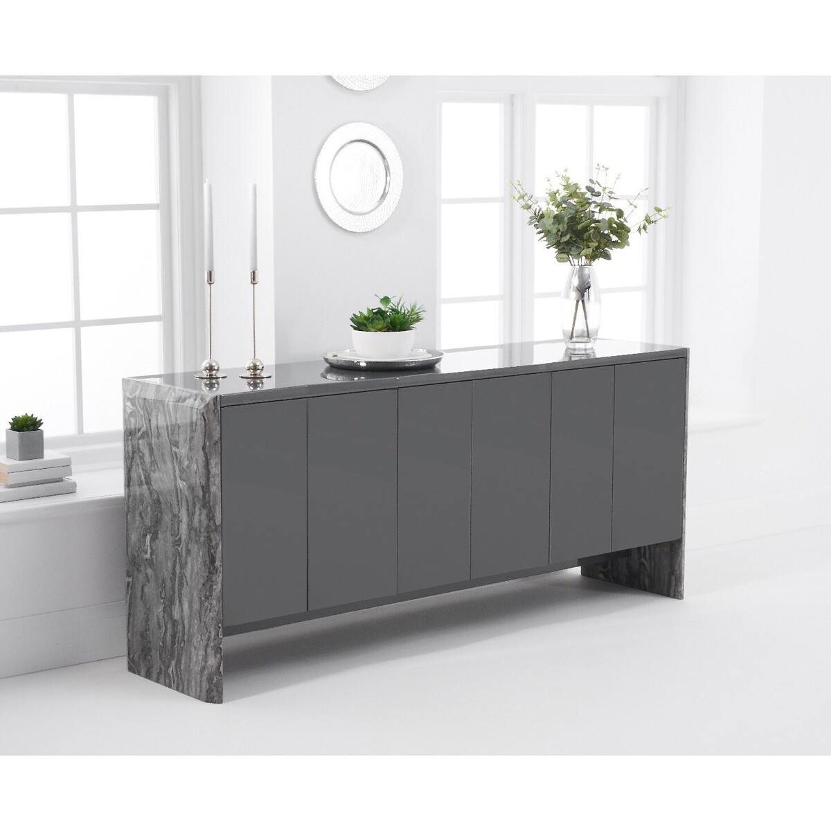 If you’re looking for the ‘wow’ factor then look no further than the Dorit range! An opulent collection that guarantees a luxe look for your home, the 180cm Dorit sideboard is crafted from grey marble - adding a touch of elegance to any room. This piece has four doors and a minimalist modern finish. Truly elegant and a luxe looking collection Solid marble construction. Six drawers and six doors gives plenty of storage space with good access. On-trend grey colouring, 180cm
