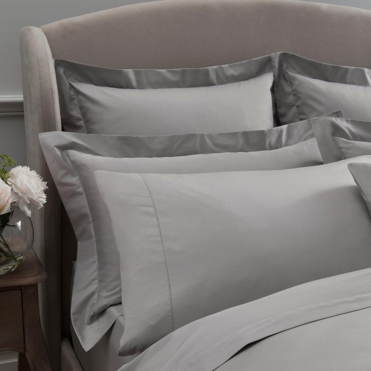Dorma 300 Thread Count 100% Cotton Sateen Plain Cuffed Pillowcase Silver