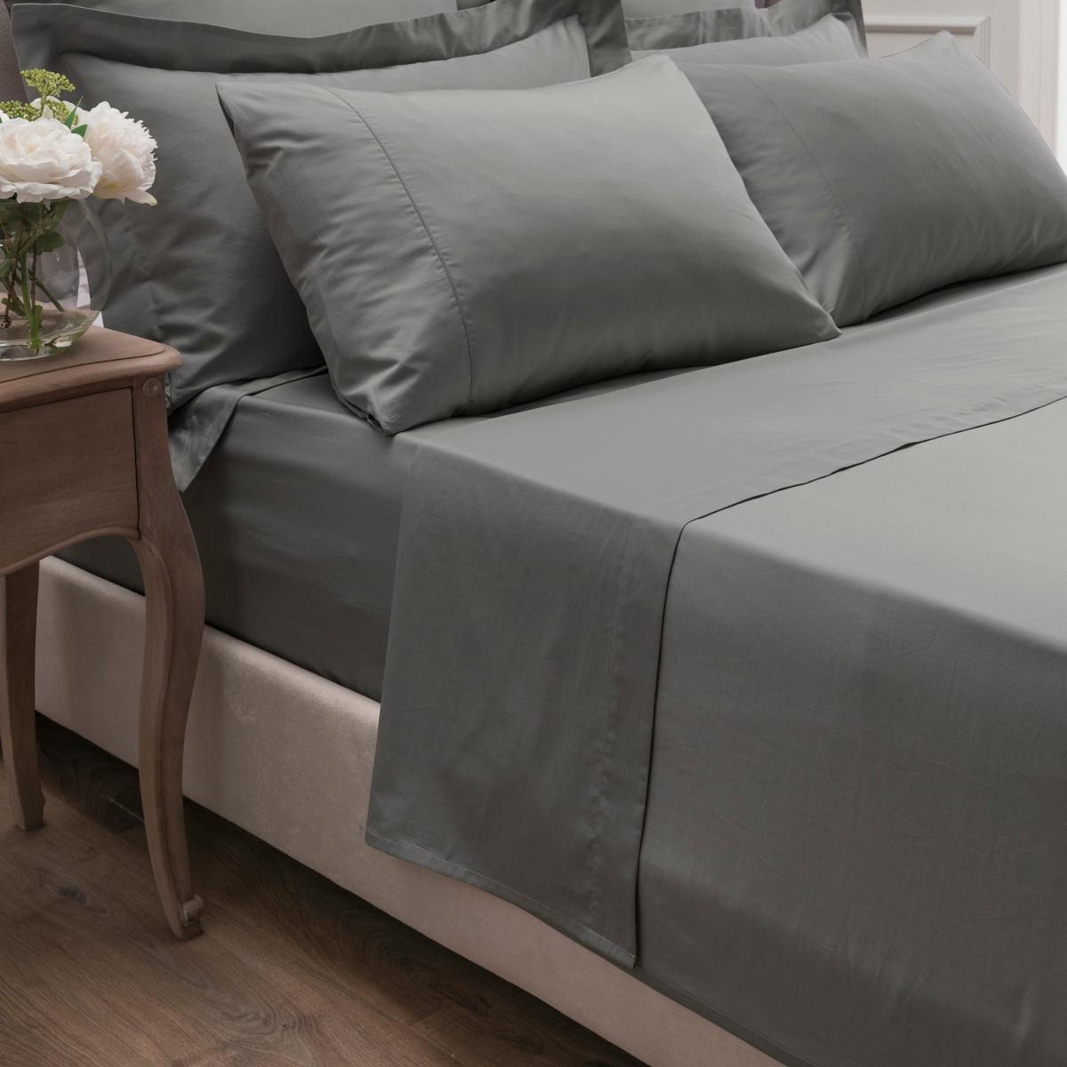 Dorma 300 Thread Count 100% Cotton Sateen Plain Flat Sheet Slate