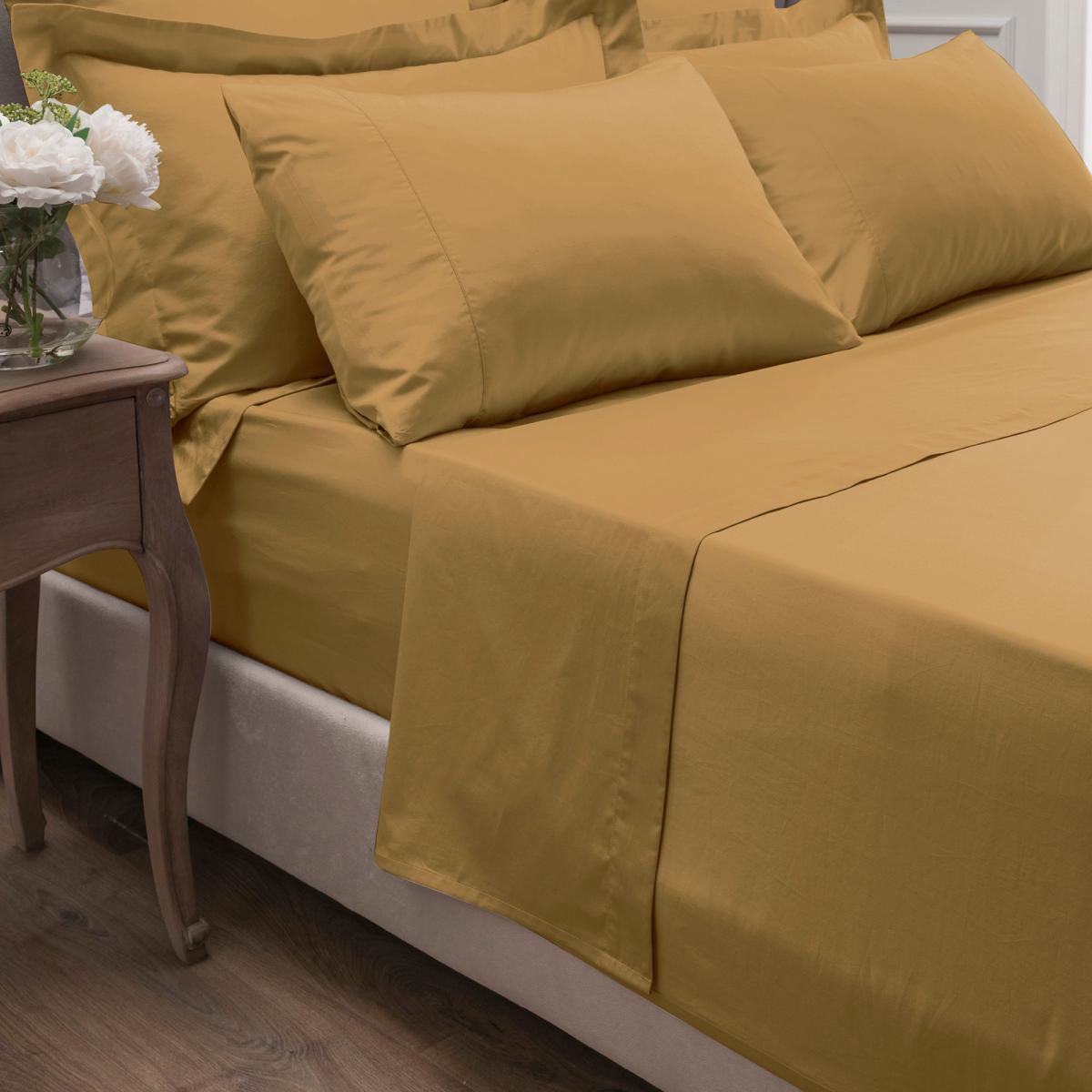 Dorma 300 Thread Count 100% Cotton Sateen Plain Flat Sheet Yellow