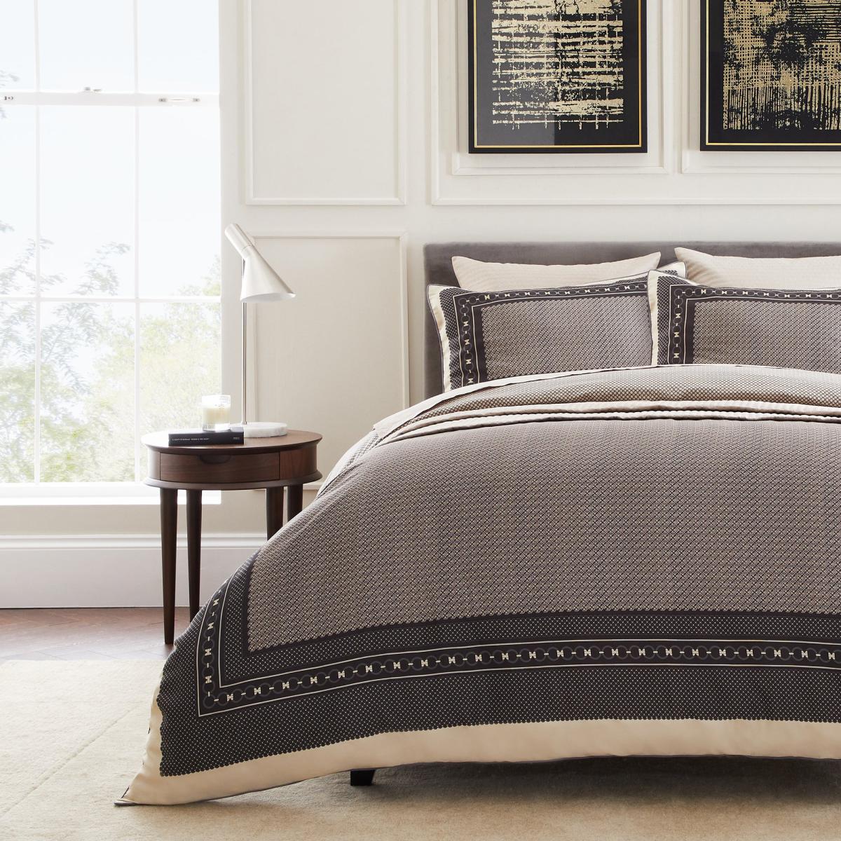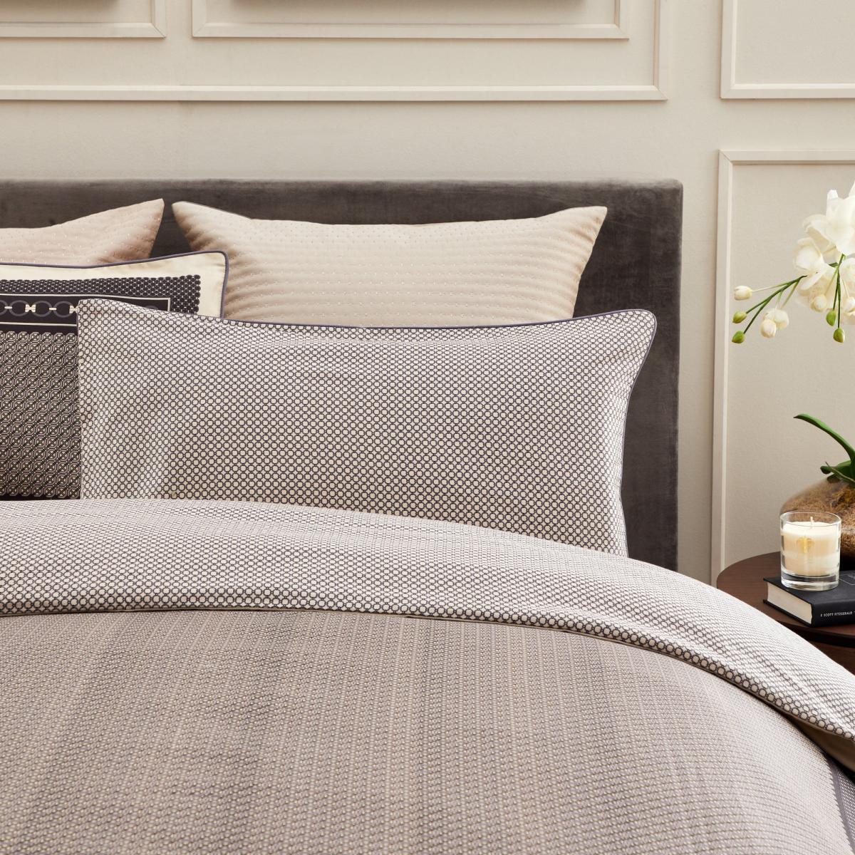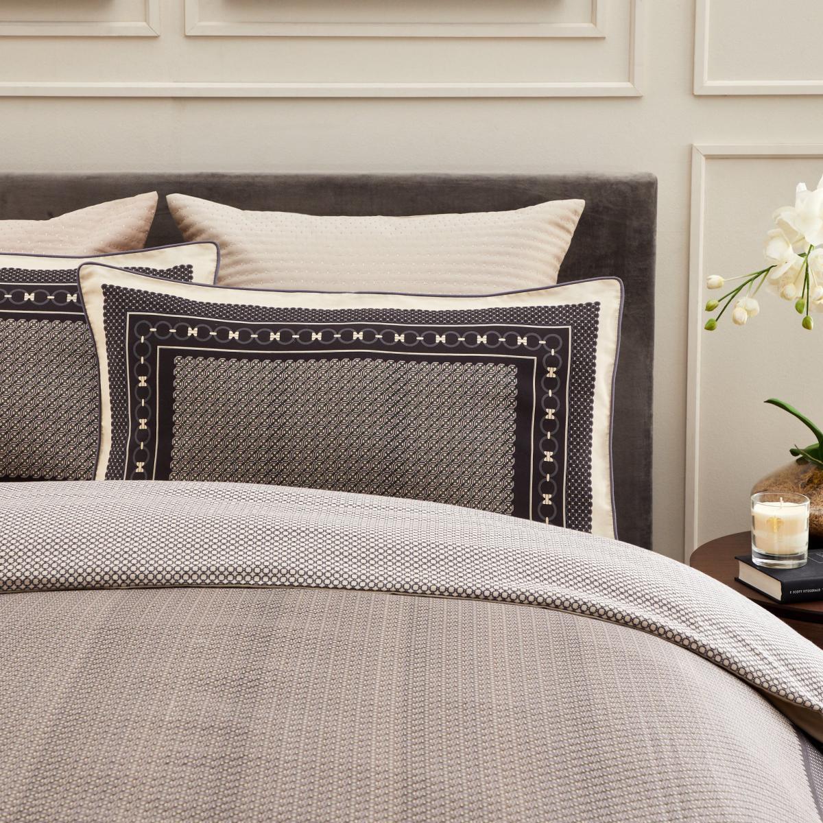 Fashioning stylish micro-geometric patterns in shades of charcoal and caramel, Abbotswood will make a grand bedroom statement piece. Crafted from 100% cotton, with a quality 300 thread count, this luxury duvet cover and pillowcase set offers natural softness and breathable properties and is finished with stunning piped edges and a zip fastening. Complete with a 10 year guarantee, Abbotswood will offer you an effortless night's sleep for years to come. This product is STANDARD 100 by OEKO-TEX®Certified. This means that it has been tested to ensure it is free of harmful substances and therefore harmless in human ecological terms.