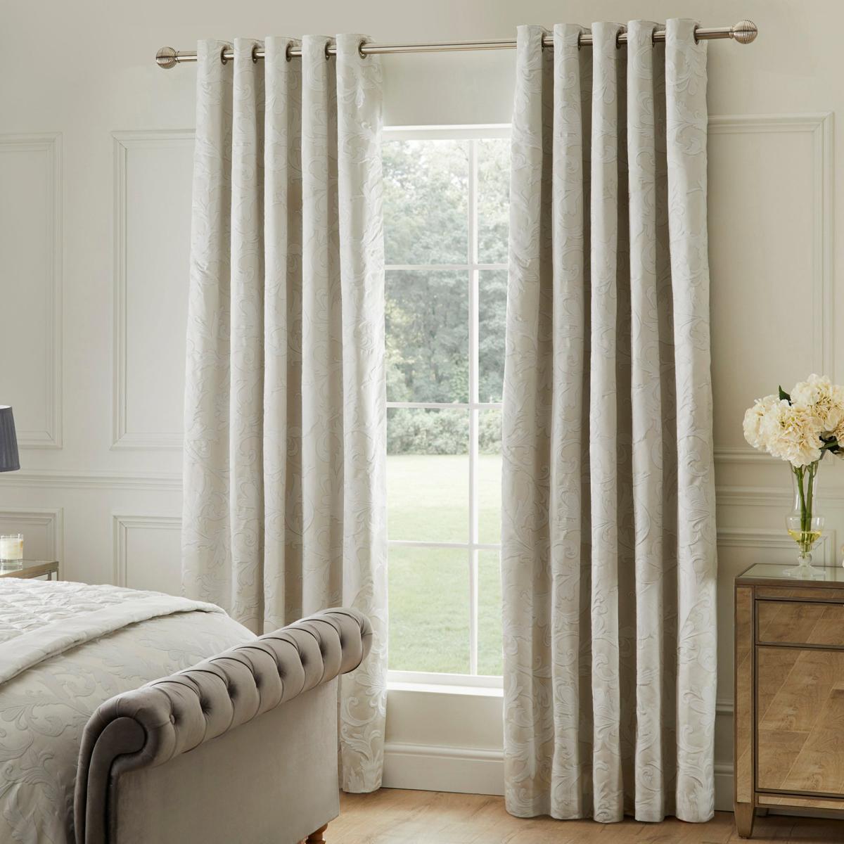 Dorma Acanthus Jacquard Blackout Eyelet Curtains Cream