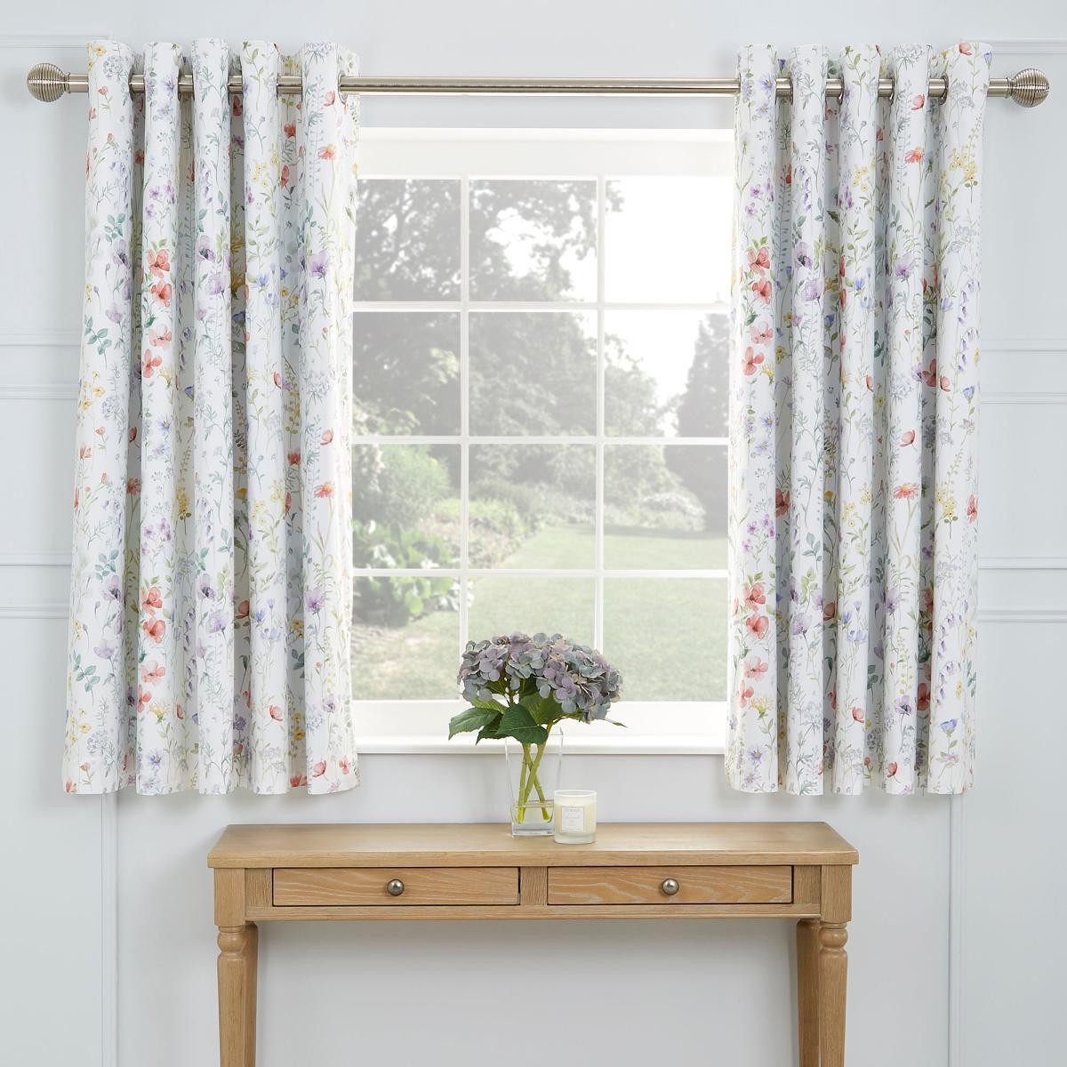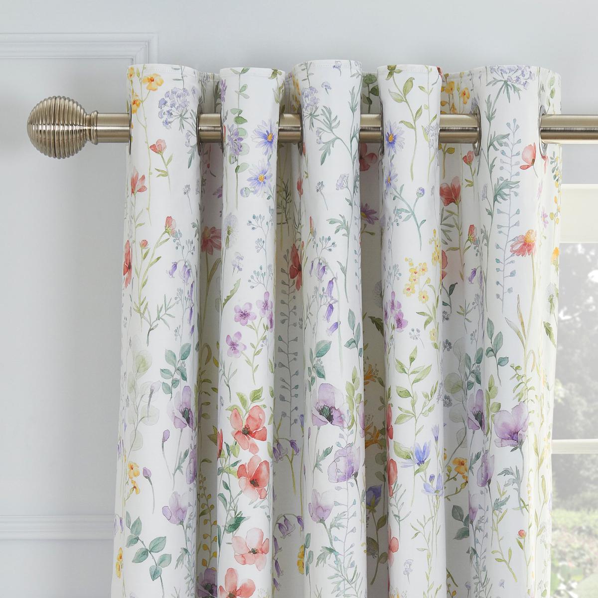 Dorma Botanical Wildflower Blackout Eyelet Curtains White, Green and Purple