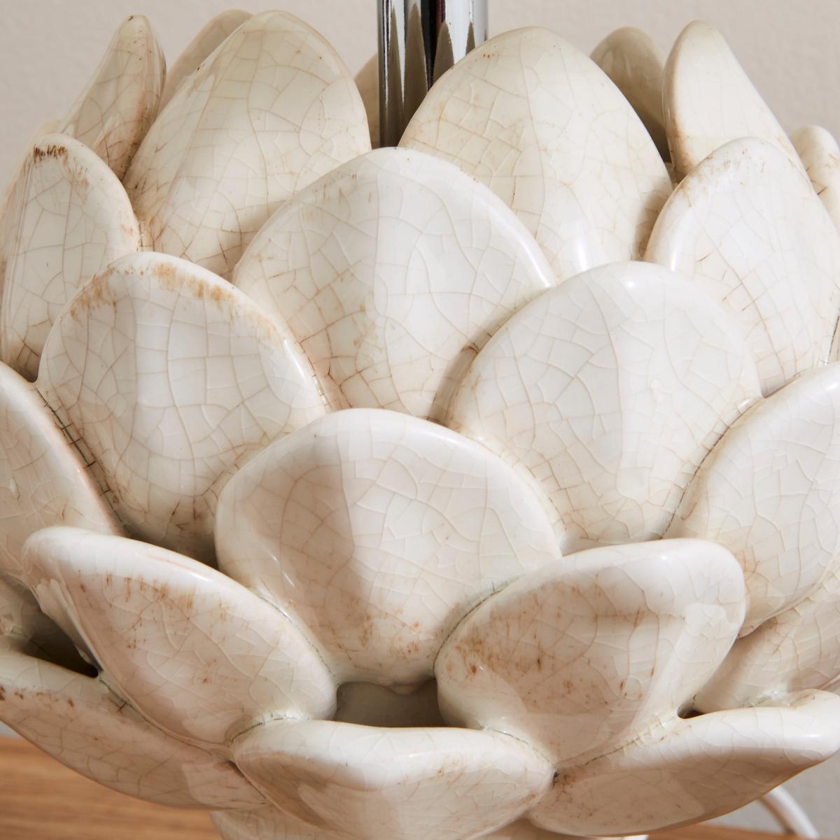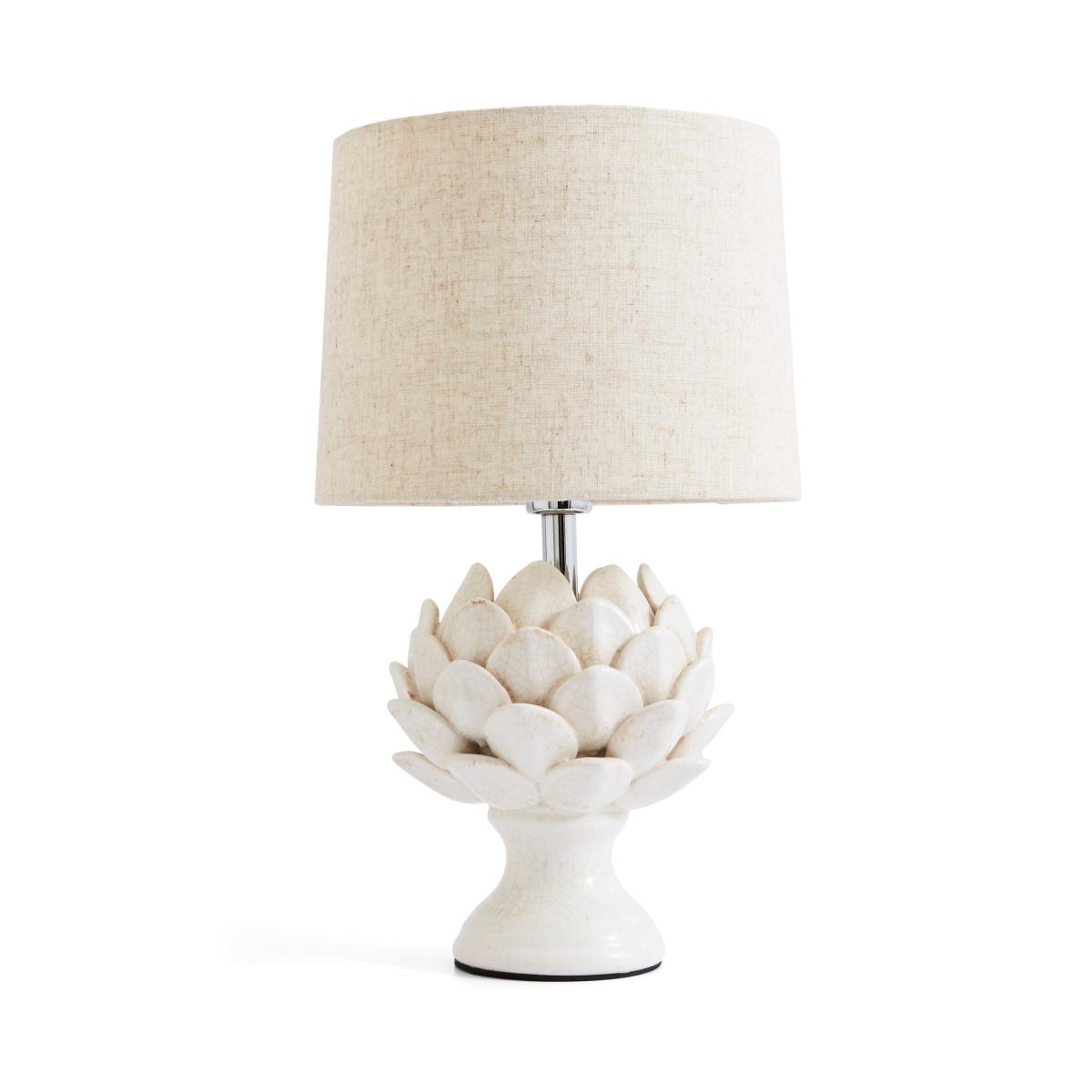 Made with a soft cream ceramic base featuring a unique artichoke flower design this decorative table lamp from Dorma is finished with a coordinating neutral cream shade. Available in a choice of sizes. Please note: Bulbs are not included.