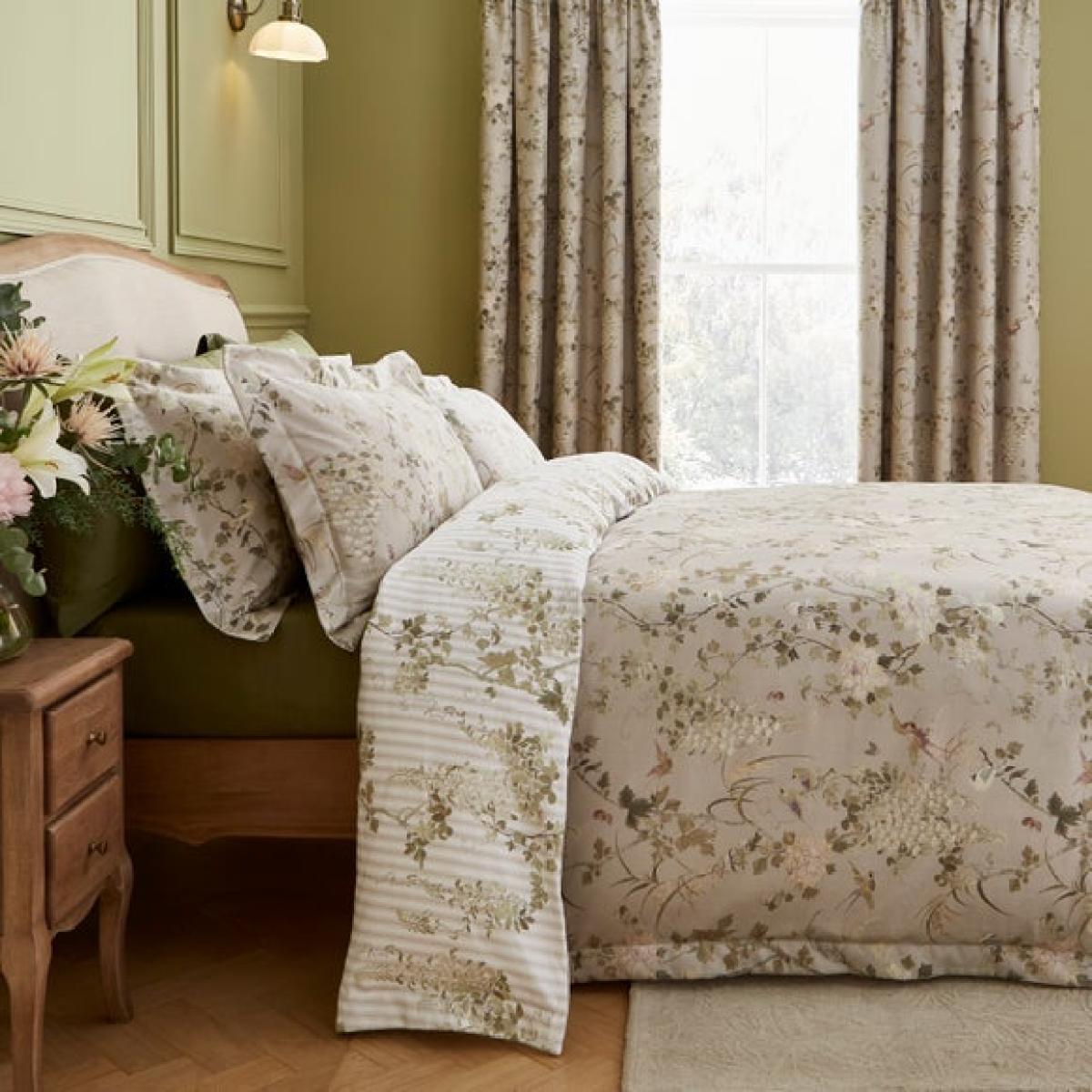 * Crafted from soft and breathable 100% Cotton * Premium cotton Sateen finish * Soft and inviting floral design * Machine washable * Coordinating items available Infuse your bedroom with the serene beauty of the Dorma Cherwell Duvet Cover Set, where delicate artistry meets superior comfort. Crafted from 100% cotton in a sumptuous 300 thread count sateen weave, this elegant set exudes quiet sophistication. The design showcases a graceful oriental-inspired floral trail, where soft pink blossoms and lavender-toned birds flutter across a tranquil, neutral backdrop. The gentle sheen of the sateen elevates the painterly details, creating a subtle luminosity that catches the light with every movement. Finished with a refined oxford edge for a crisp, tailored look, the Cherwell set is a timeless choice that transforms your bed into a restful retreat steeped in elegance. Dorma Established in 1921, Dorma is a British heritage brand synonymous with quality, luxury and impeccable attention to detail. Dorma; our name is your guarantee.