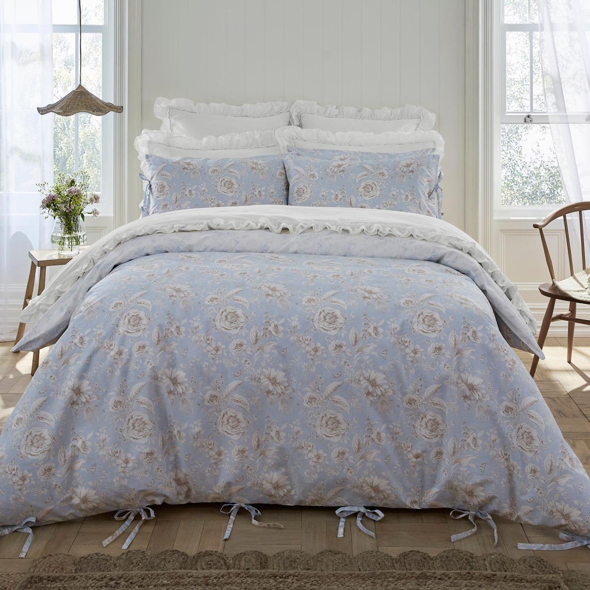 Dorma Daphne 100% Cotton Duvet Cover and Pillowcase Set Blue