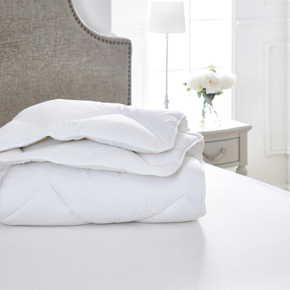 Crafted in the UK with a sumptuous 233 thread count, this 15 tog Dorma duvet stays fuller for longer thanks to the luxurious spiral fibre polyester filling which has a high quality feel. Its quilt stitch allows for even distribution of the deluxe filling and the bound edge finish adds extra durability. Covered with a crisp cotton handle made from 100% cotton, this full forever duvet is perfect for keeping you extra warm and snug on colder nights of the year. Machine washable, tumble dryer safe and available in a variety of sizes. Contains recycled fibre.